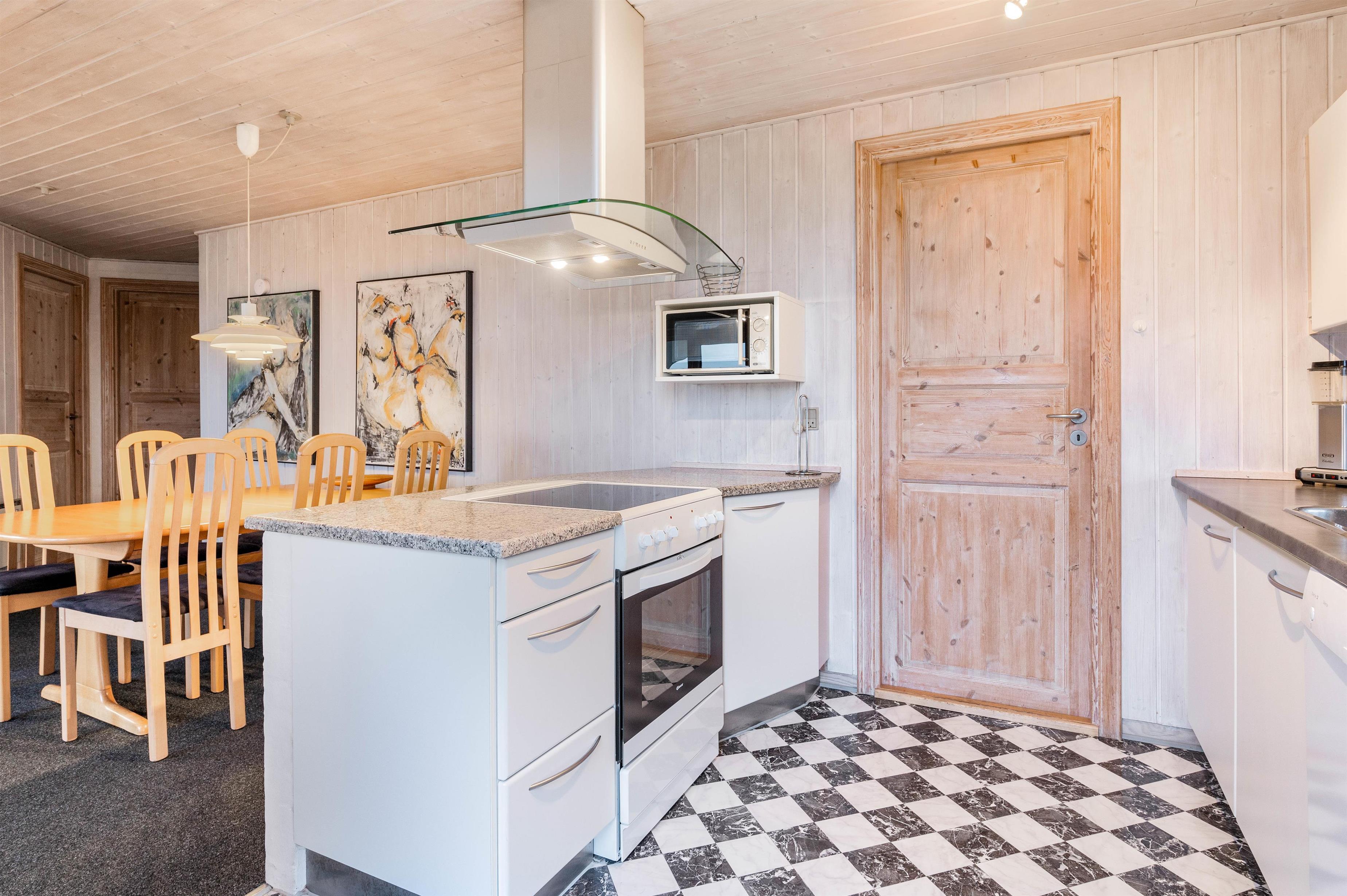 Indenfor er huset lyst og dejligt indrettet med gode møbler og masser af moderne udstyr, som er med til at gøre ferien så behagelig som muligt. Har I lyst til at hoppe i sauna eller spabad – så er det også en mulighed. Det er særligt attraktivt på dage, hvor I har været meget ude i den friske luft. Det varme vand giver ny energi til både krop og sjæl. I huset er der også et gæstetoilet samt 3 soverum med både dobbeltsenge og et enkelt værelse med 2 enkeltsenge. I det store køkkenalrum kan I samles om madlavningen eller nyde en aften foran fjernsynet, imens I kan høre lyden fra brændeovnens knitrende flammer.