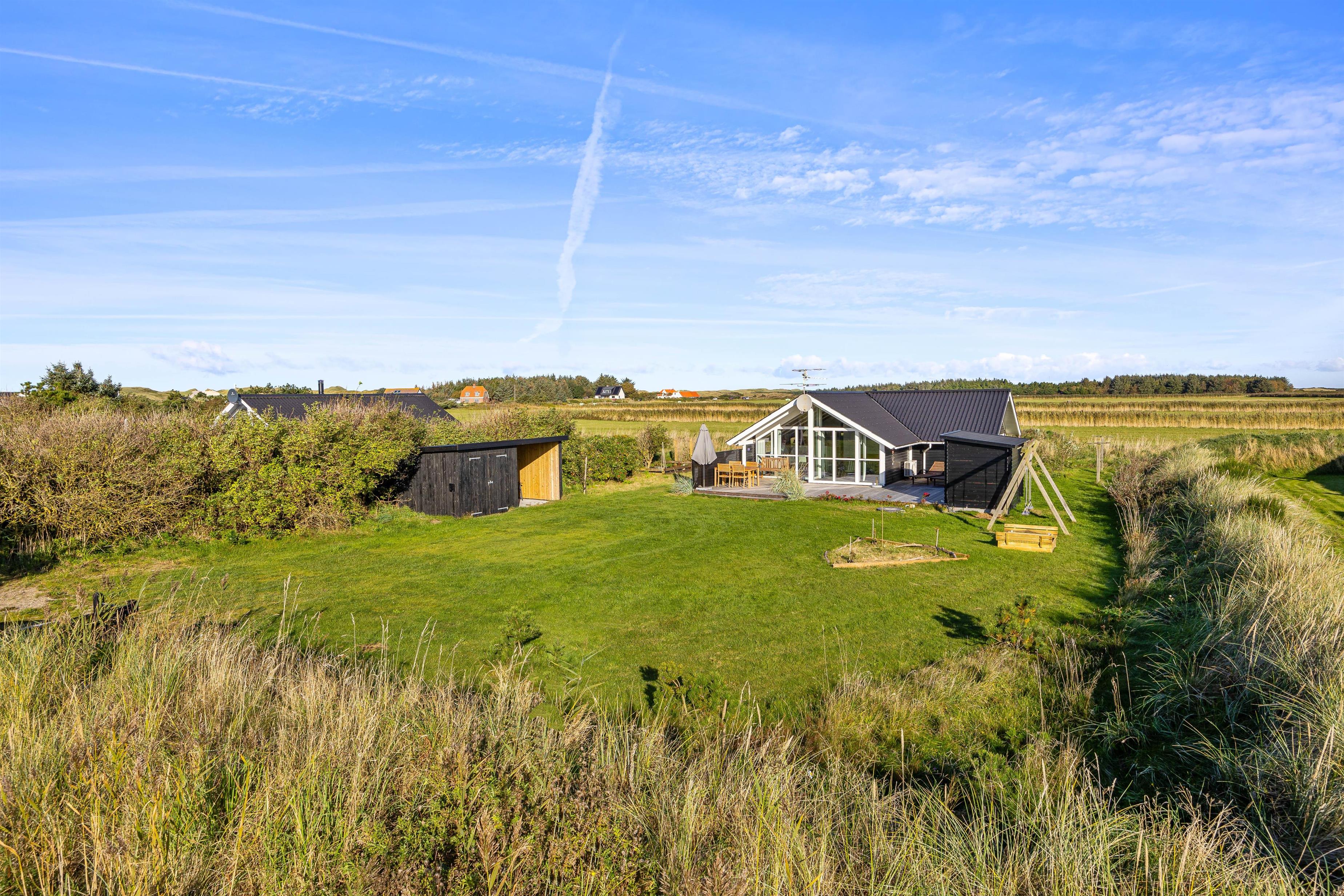 På Laust Diges Vej 25 ligger dette hyggelige sommerhus med plads til 5 personer. Det familievenlige feriehus indbyder til en afslappende ferie for hele familien. Med en dejlig stor græsplæne, gynger, sandkasse, spa og sauna står familiehyggen i centrum, tæt på den smukke natur og vandet, beliggende på Holmsland Klit.