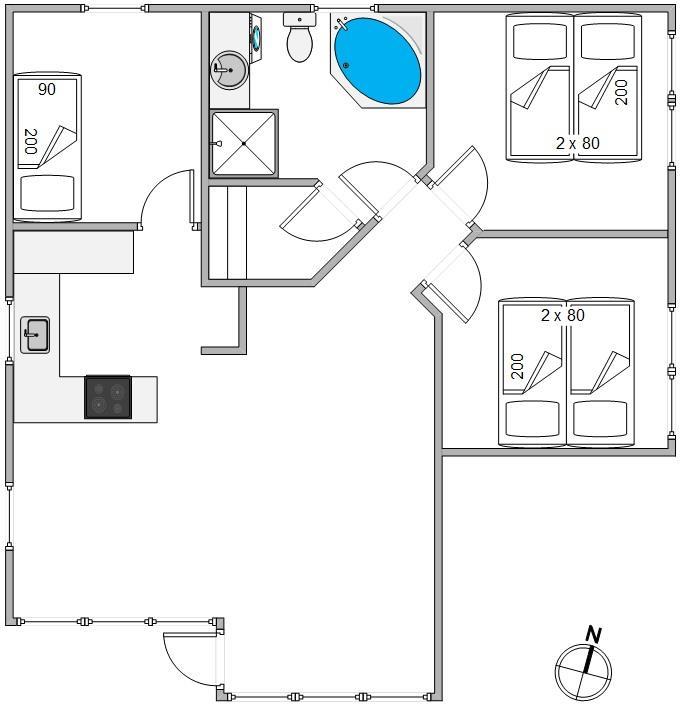 I feriehuset er der 3 soveværelser, de 2 af dem med dobbeltsenge og det tredje værelse er indrettet med en enkeltseng. Her kan du få ro og ladet op til de næste dages aktiviteter.
