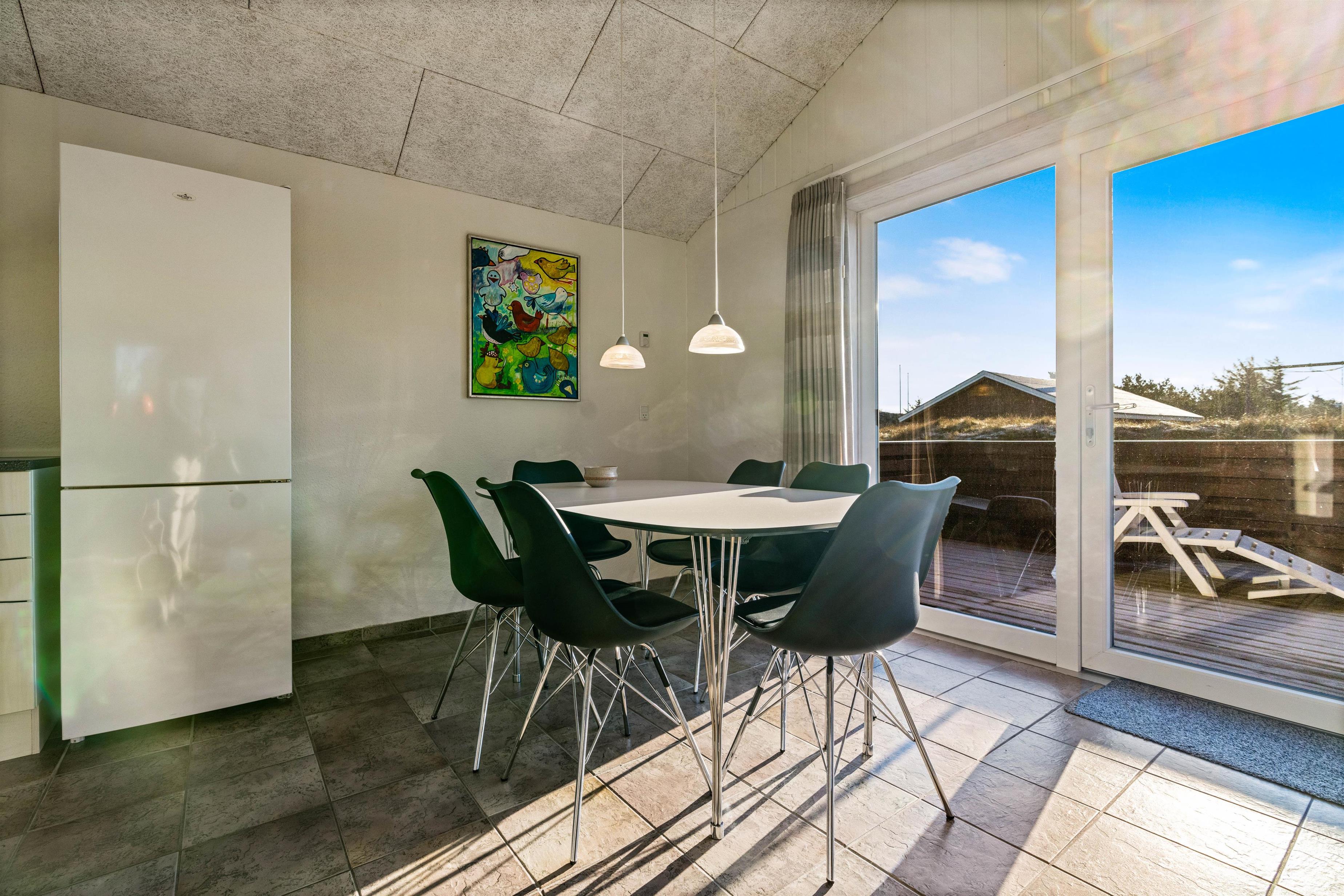 Feriehuset er helt ideelt til en afslappende ferie med familien. Her er rart at være både inde som ude, hvor både børn og hunde kan få fri leg på den lukkede terrasse. Det ligger i gåafstand til både Ringkøbing Fjord og Vesterhavet, mens der heller ikke er langt til den dejlige havneby Hvide Sande, hvor du finder gode butikker og spisesteder.