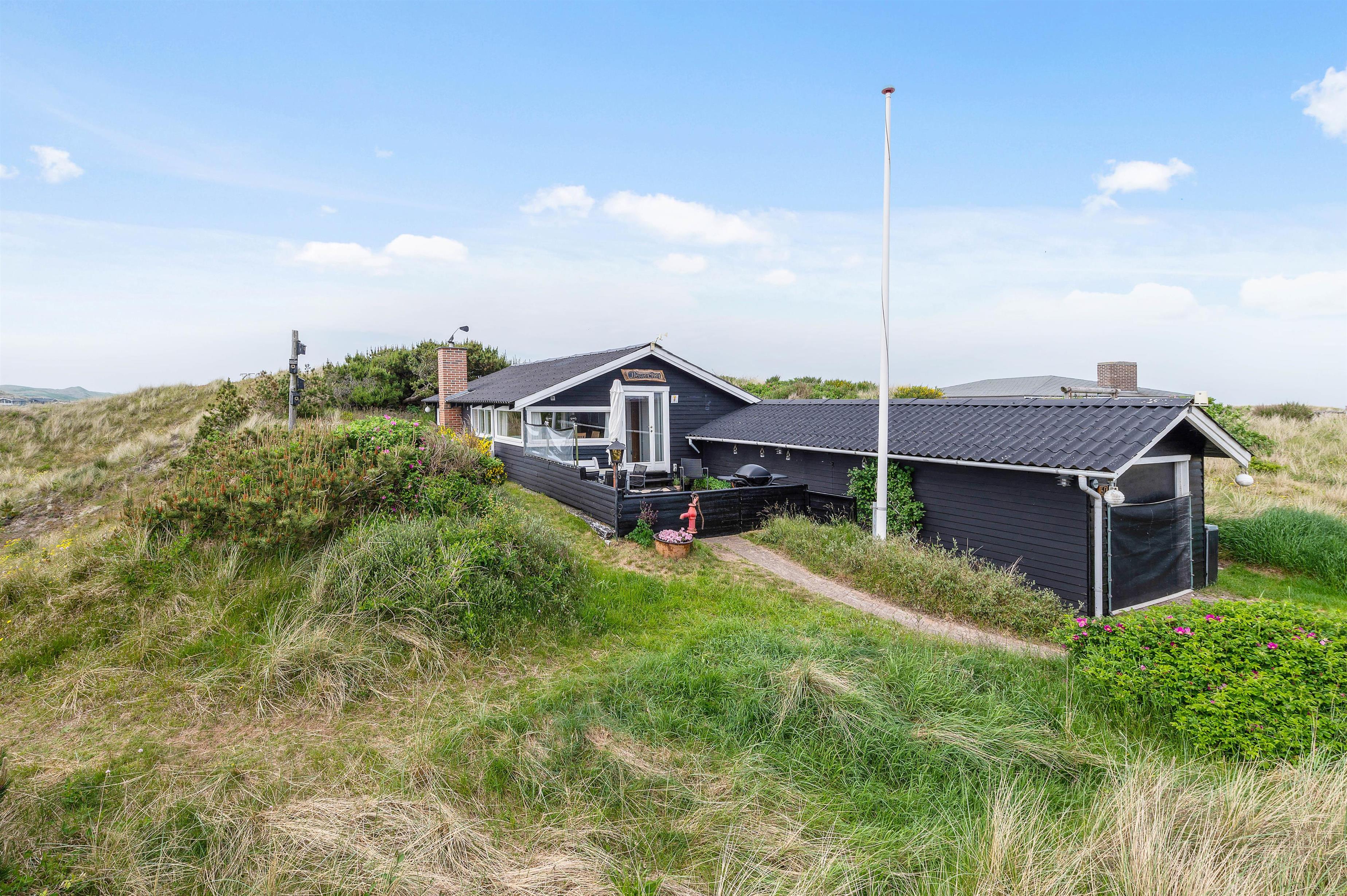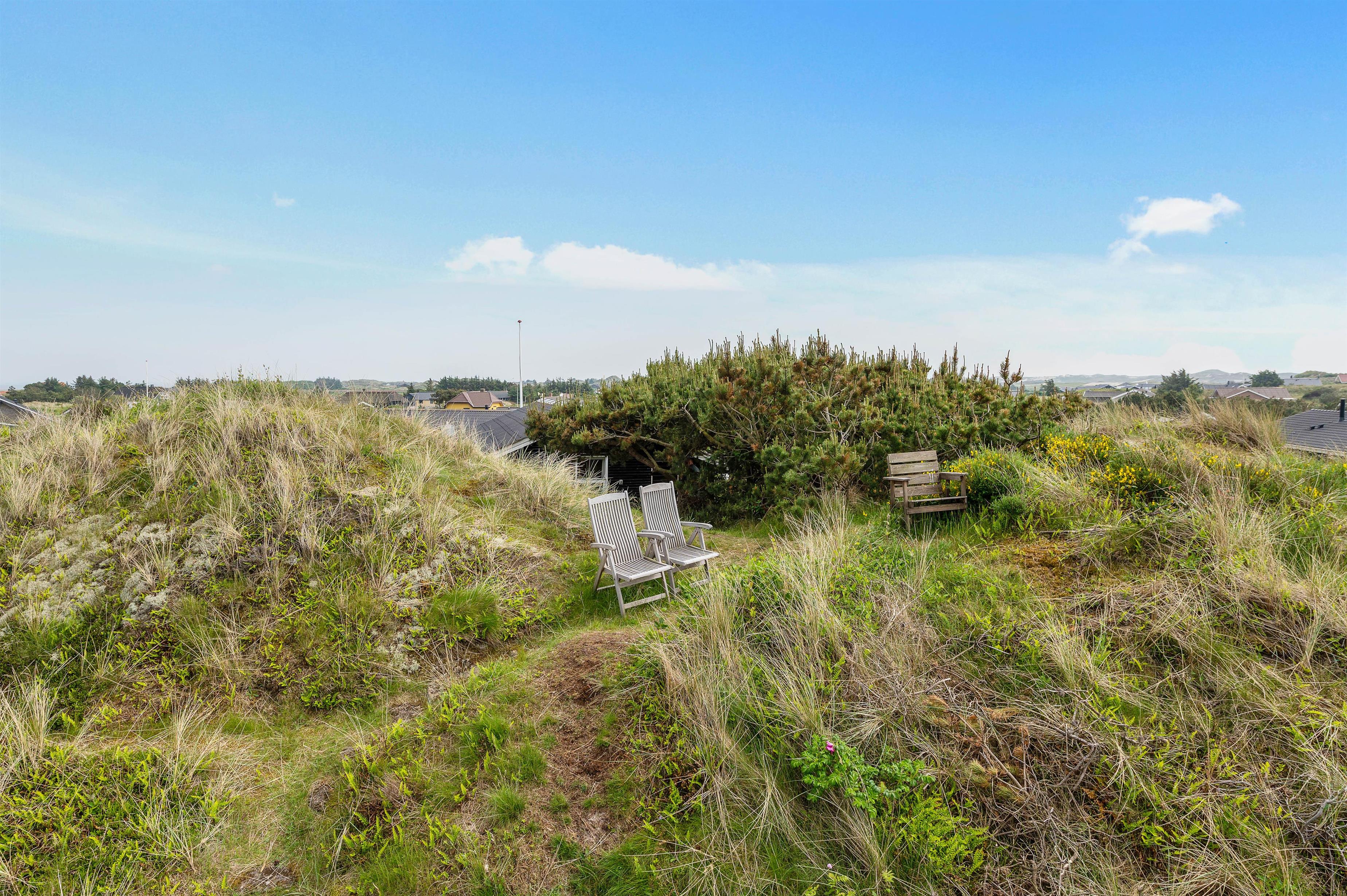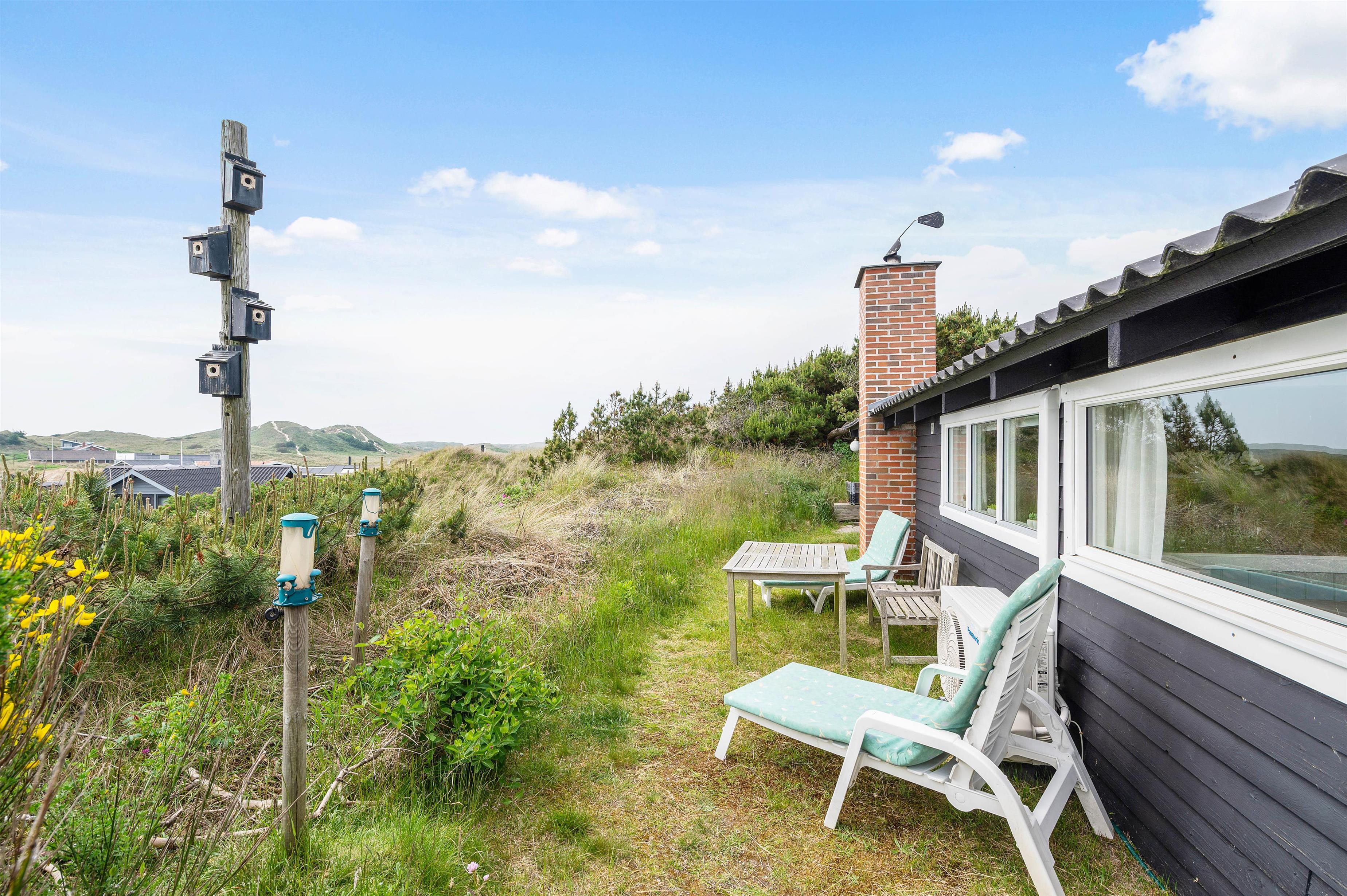 Sommerhuset ligger i det naturskønne område ved Haurvig, og naturgrunden byder på en skøn udsigt over det smukke hede- og klitlandskab. Her er en lukket terrasse, hvor I kan nyde et lækkert grillmåltid, mens hunden kan gå frit rundt. Terrassen er desuden delvist afskærmet, så I kan sidde i læ for vinden.