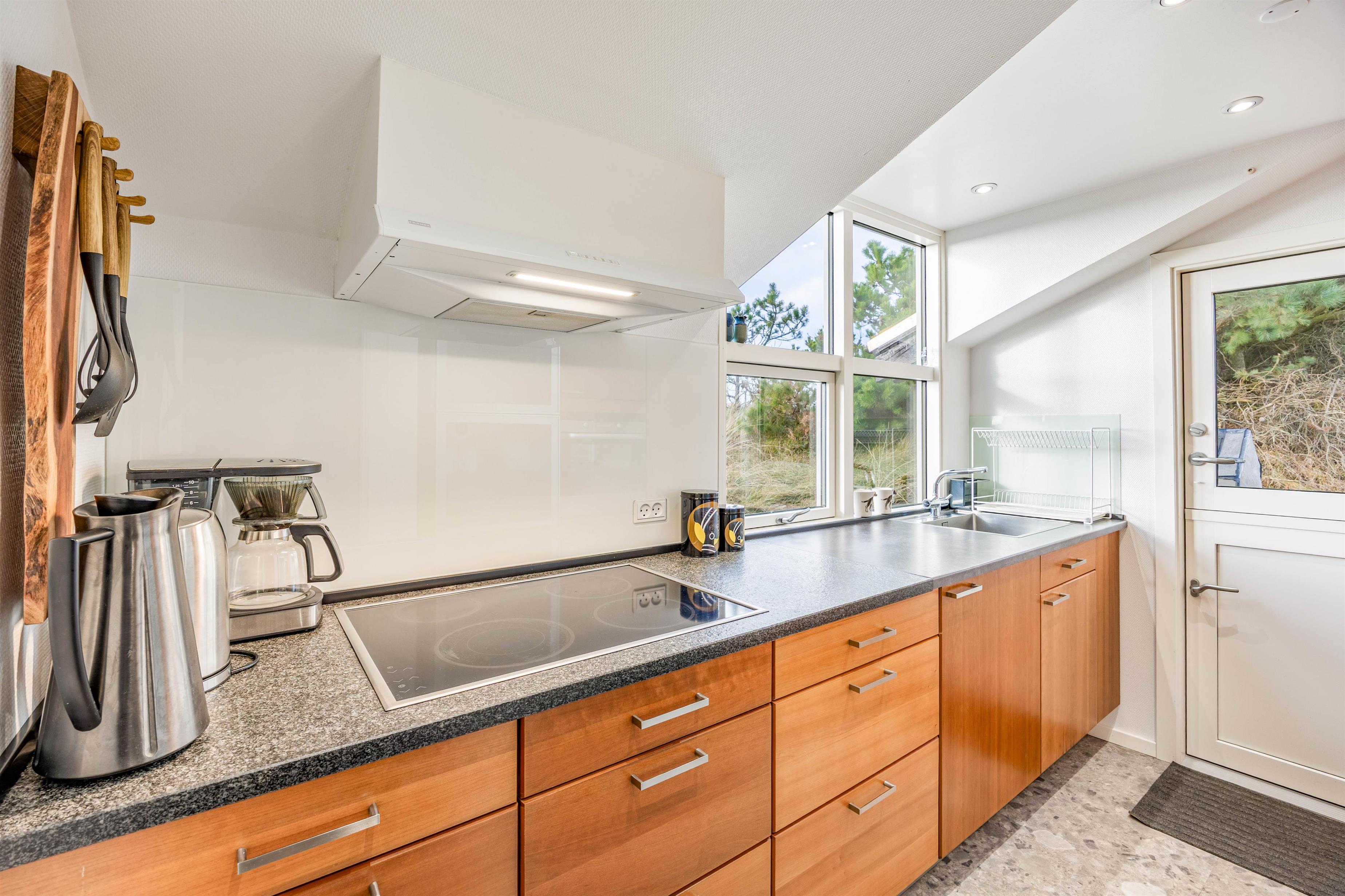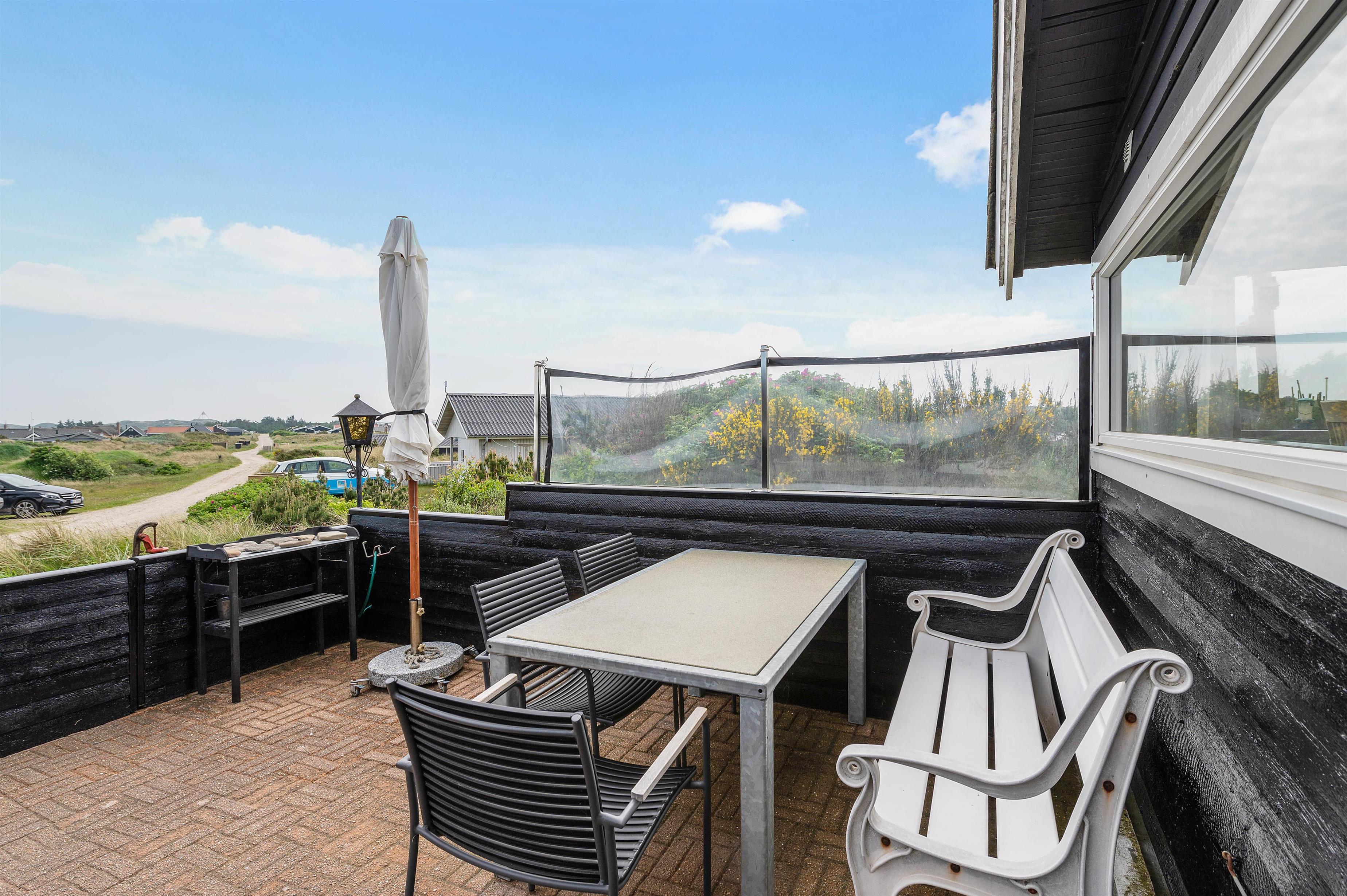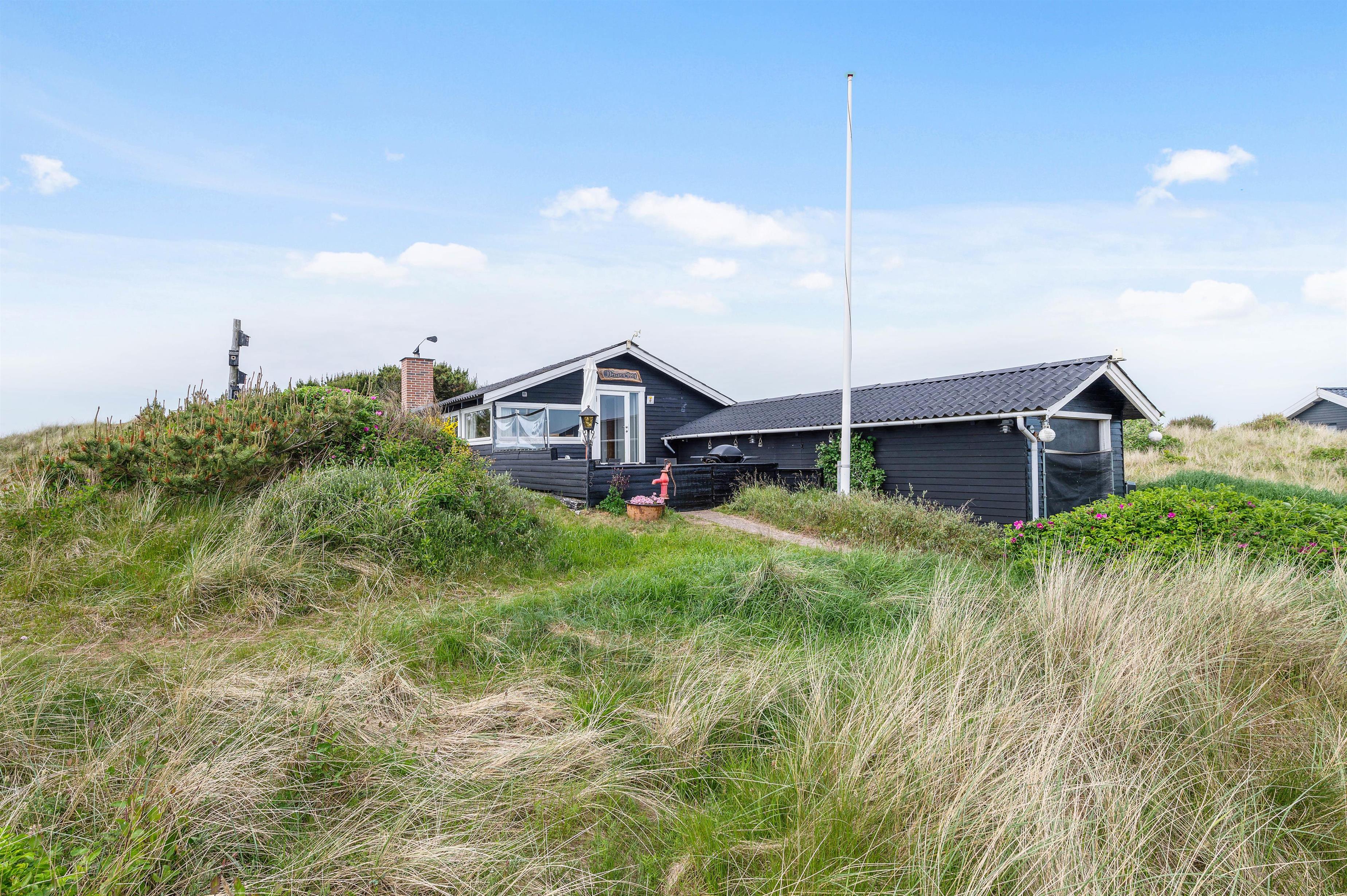 Sommerhuset ligger i det naturskønne område ved Haurvig, og naturgrunden byder på en skøn udsigt over det smukke hede- og klitlandskab. Her er en lukket terrasse, hvor I kan nyde et lækkert grillmåltid, mens hunden kan gå frit rundt. Terrassen er desuden delvist afskærmet, så I kan sidde i læ for vinden.