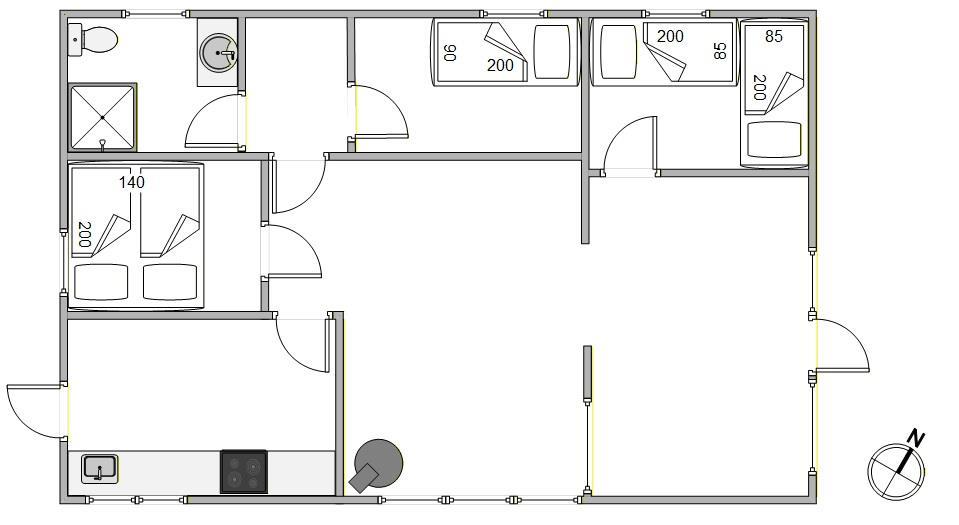 Sommerhusets 3 soveværelser sikrer jer en god nats søvn efter en god og oplevelsesrig dag. Der er en dobbeltseng, et værelse med 2 enkeltsenge samt et værelse med en enkeltseng.