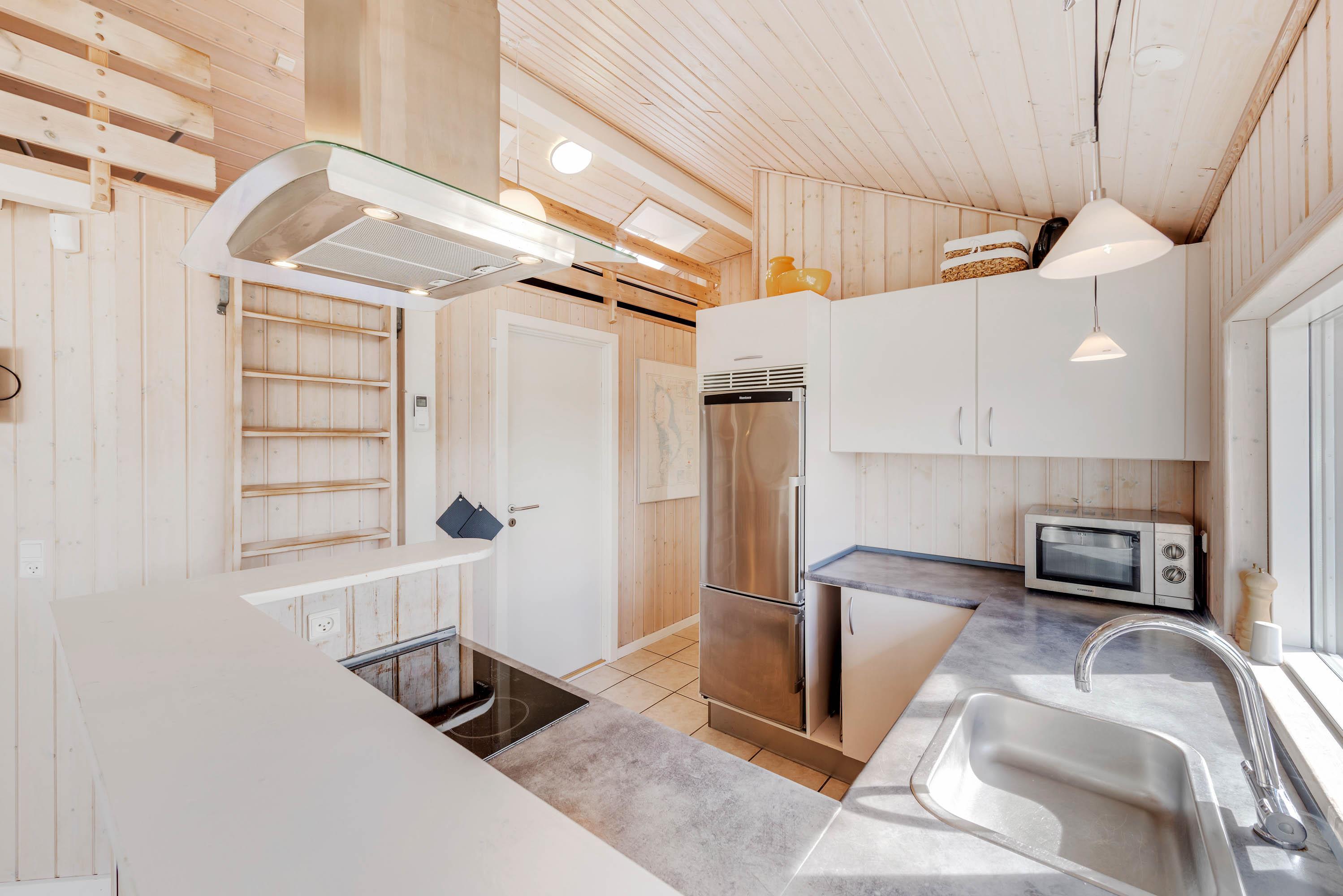 Sommerhuset er desuden udstyret med mange gode praktiske faciliteter, som gør ferien ekstra ukompliceret. I køkkenet finder I en opvaskemaskine, og derudover har ferieboligen både en vaskemaskine og en tørretumbler i den store bryggers. Den energivenlige varmepumpe er både en god hjælp til strømafregningen og et ekstra plus for miljøet.