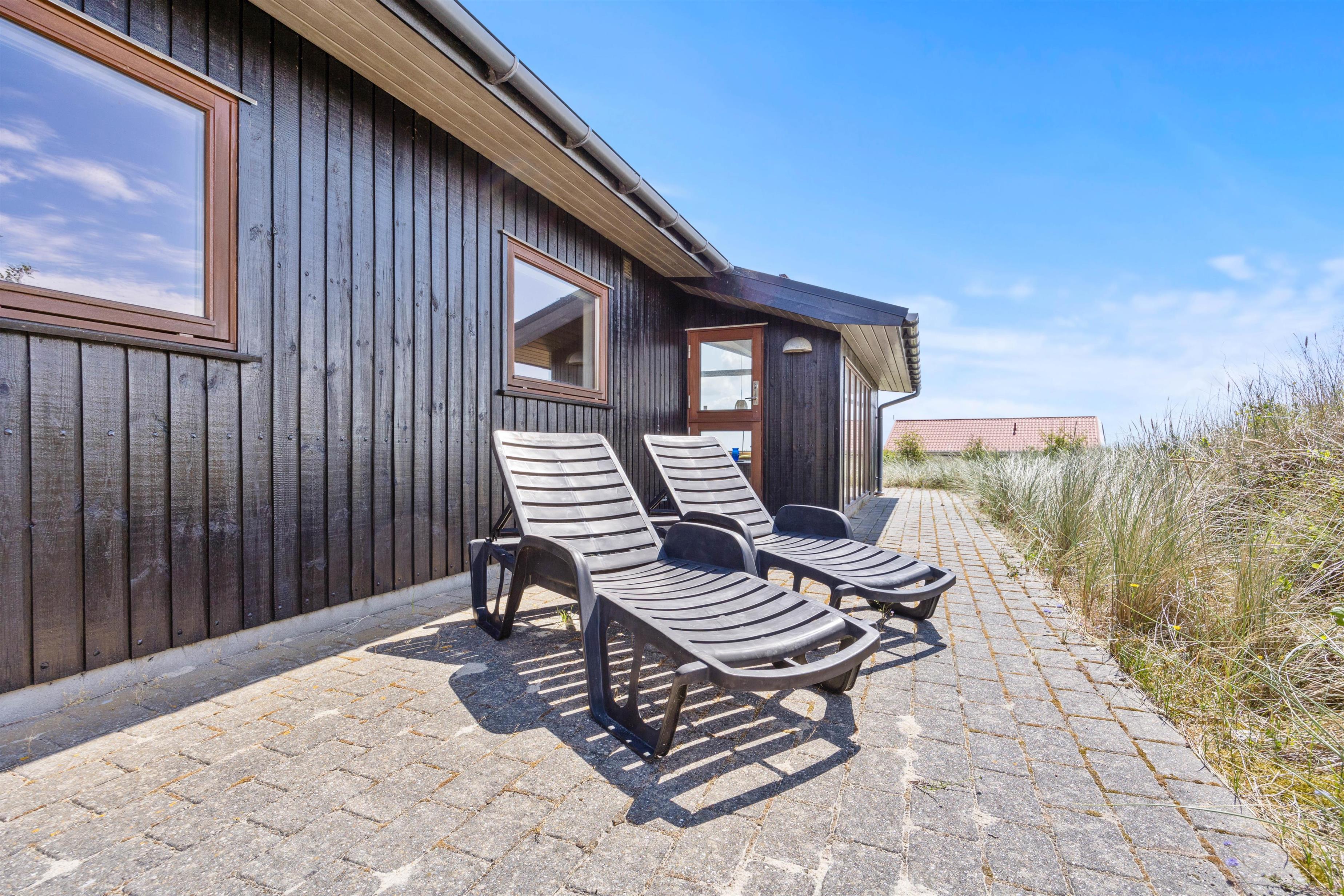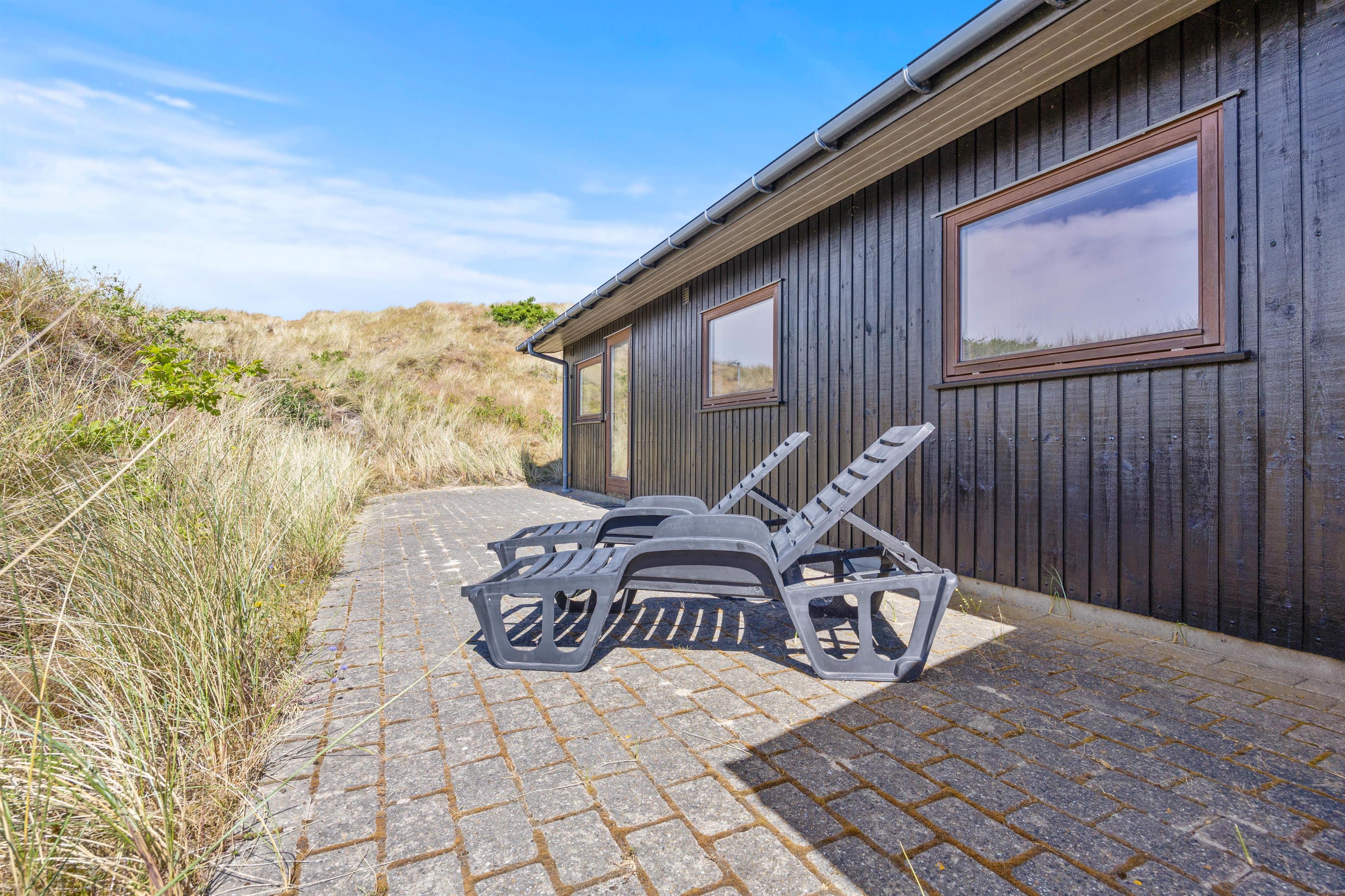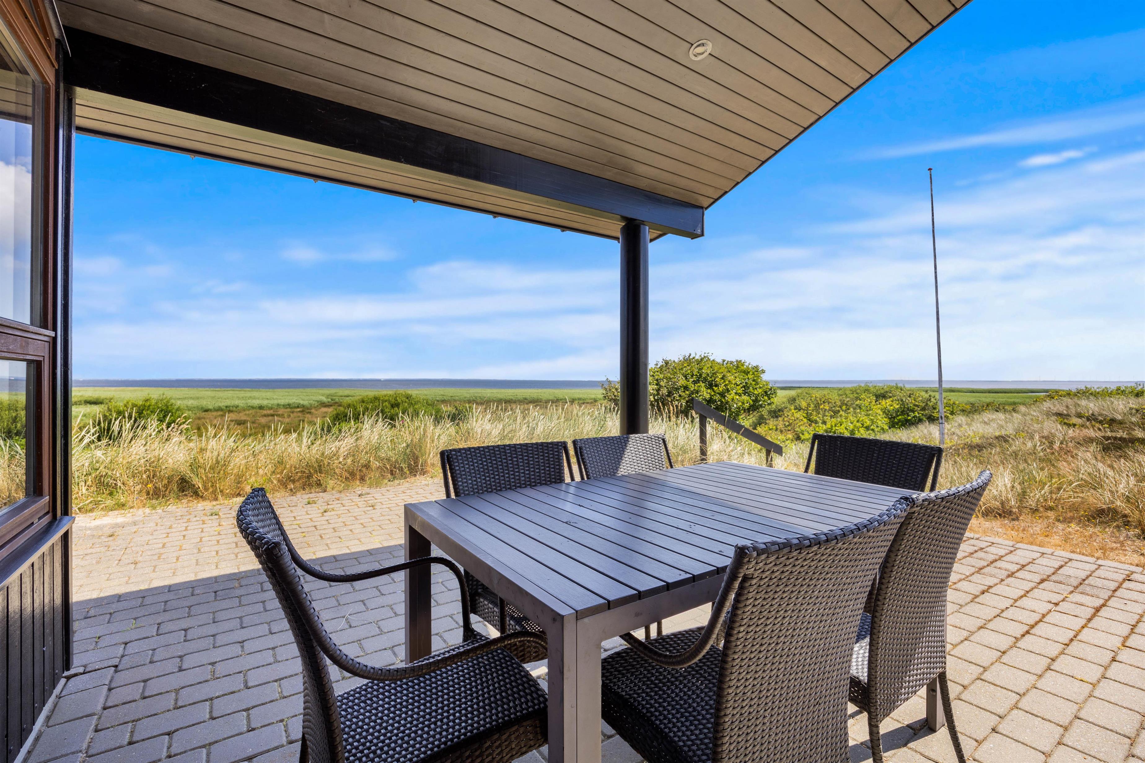 Beliggenheden af sommerhuset er bestemt ikke til at klage over. På en lille forhøjning på den store 2800 m2 grund har I udover fjordudsigt også udsigt over den skønne vestjyske natur. På terrassen venter liggestole og havemøbler på jer, så I kan nyde de varme solskinstimer. Har I brug for at sidde lidt i skyggen, har I også mulighed for dette på den delvist afskærmede og delvist overdækkede terrasse.