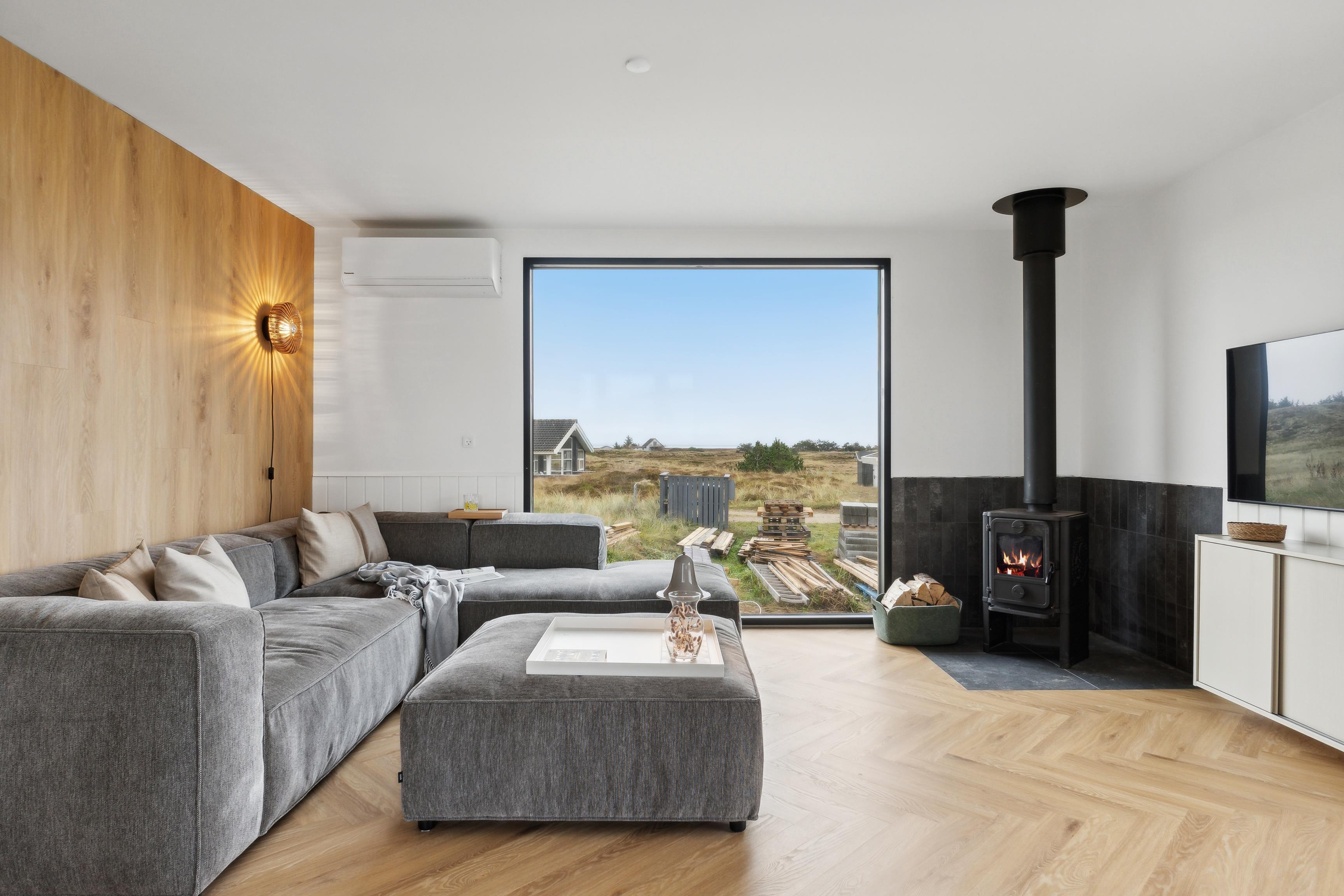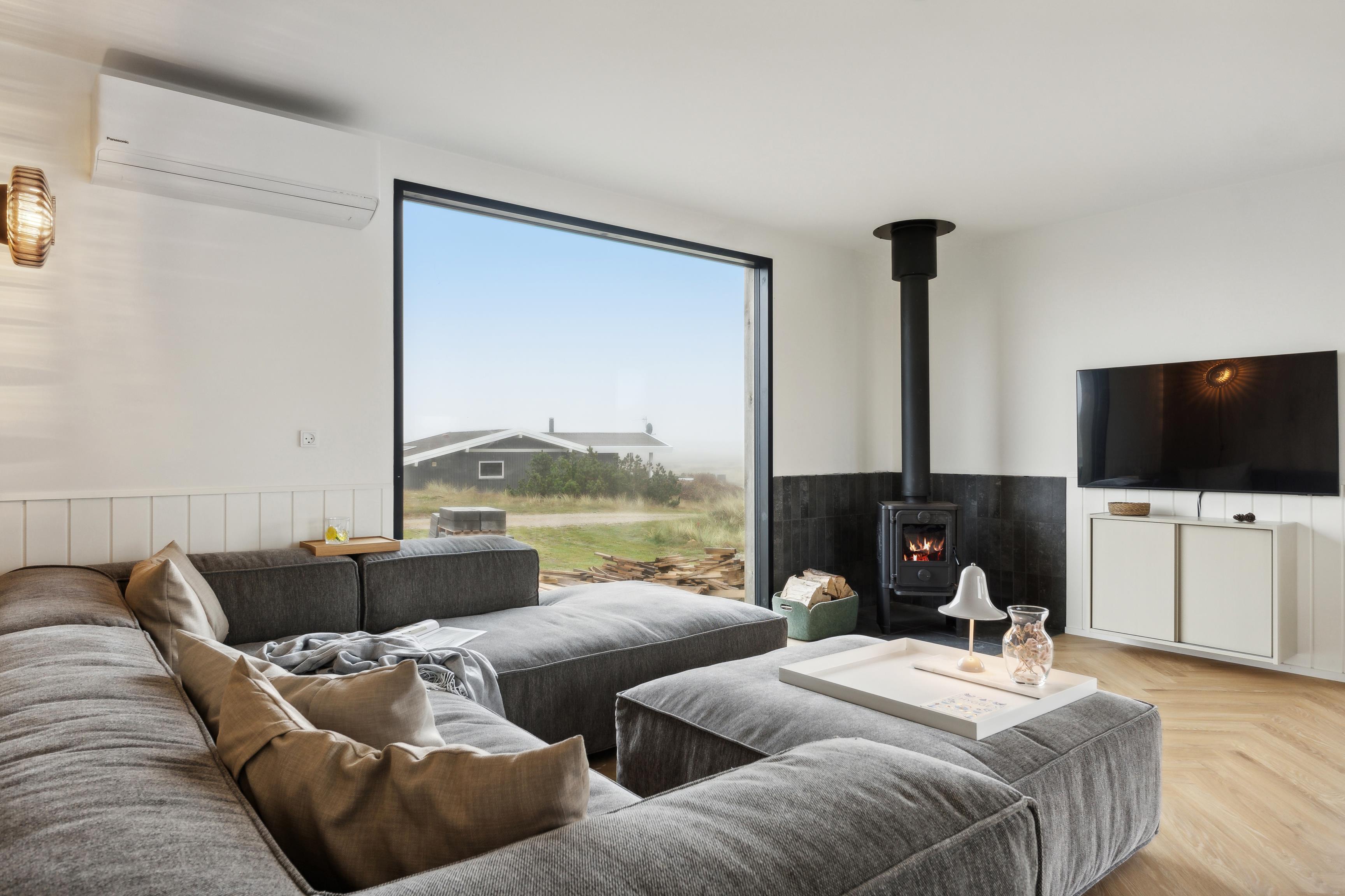 Eksklusivt, totalrenoveret sommerhus med spa og sauna nær Vesterhavet og fjordudsigt.