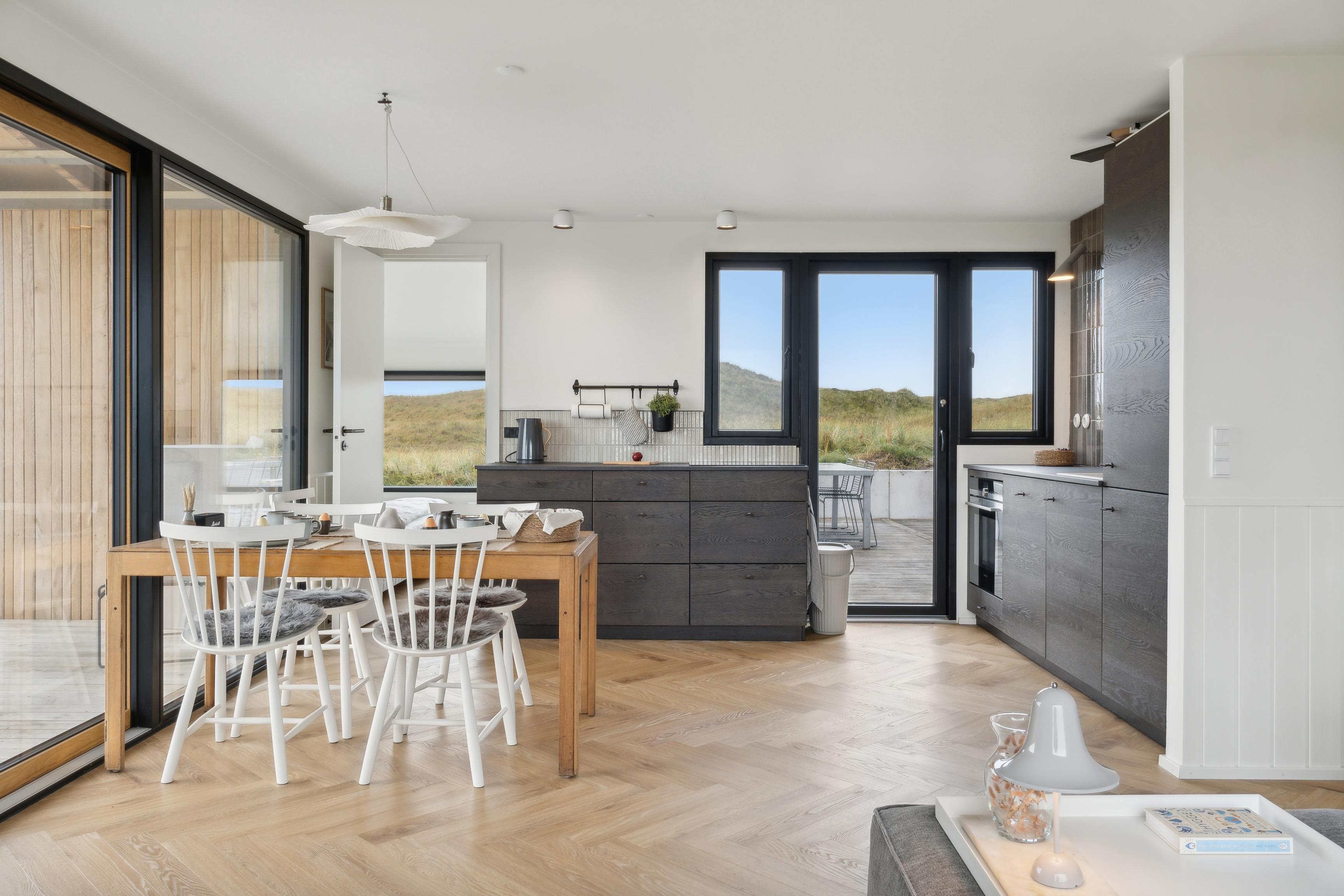 Sommerhuset har også to små skure og en 11 kW billader, hvilket gør det praktisk for elbilsejere. Det er et perfekt valg for dem, der ønsker en ferie med både luksus og moderne bekvemmeligheder i en naturskøn ramme tæt på klitterne og Vesterhavet.