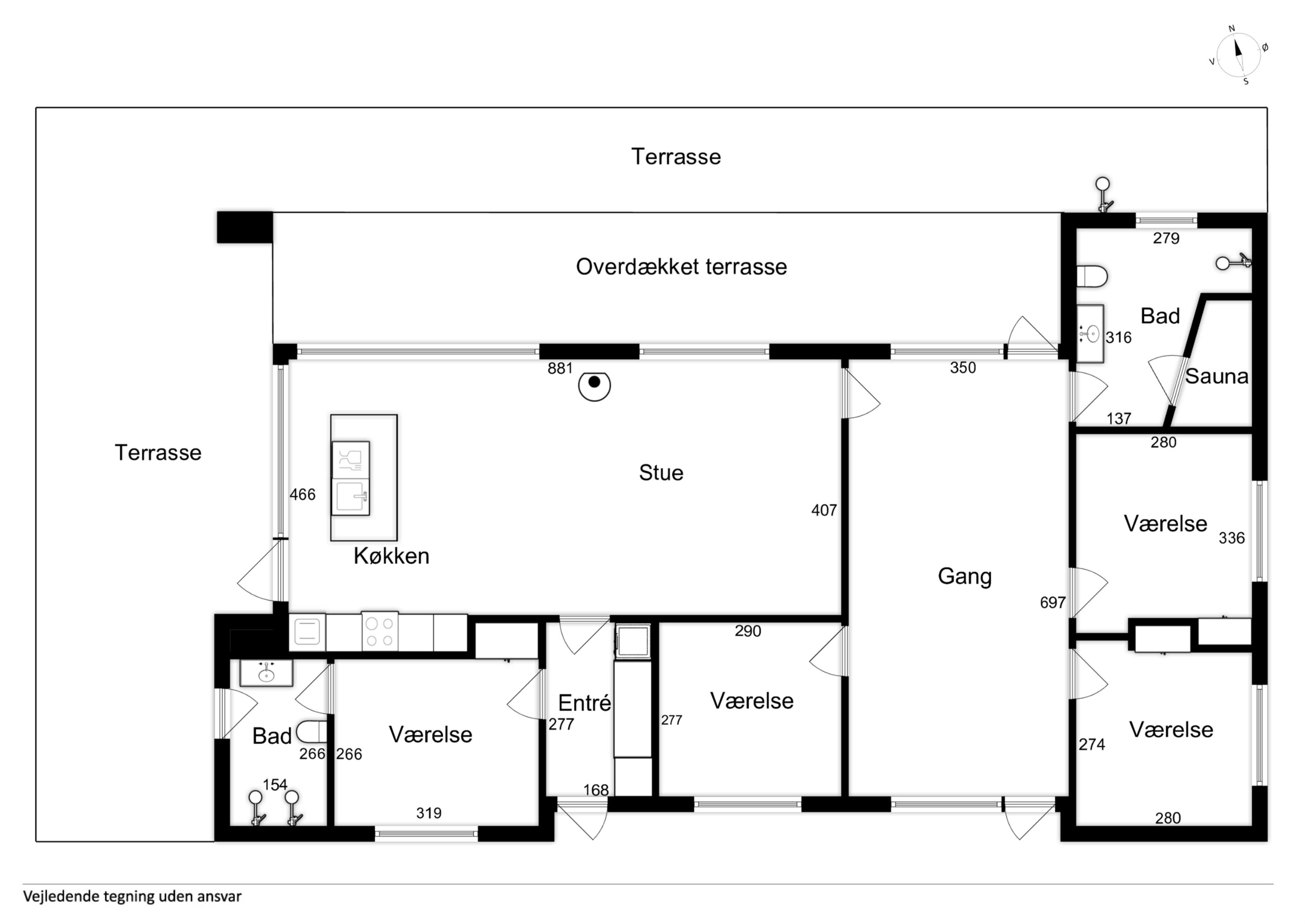 En af sommerhusets absolutte fordele er den overdækkede terrasse, som er et perfekt sted at samles på en varm sommerdag. Her kan I også tage en afslappende tur i vildmarksbadet og nyde et glas vin under stjernerne på en stille sommeraften.