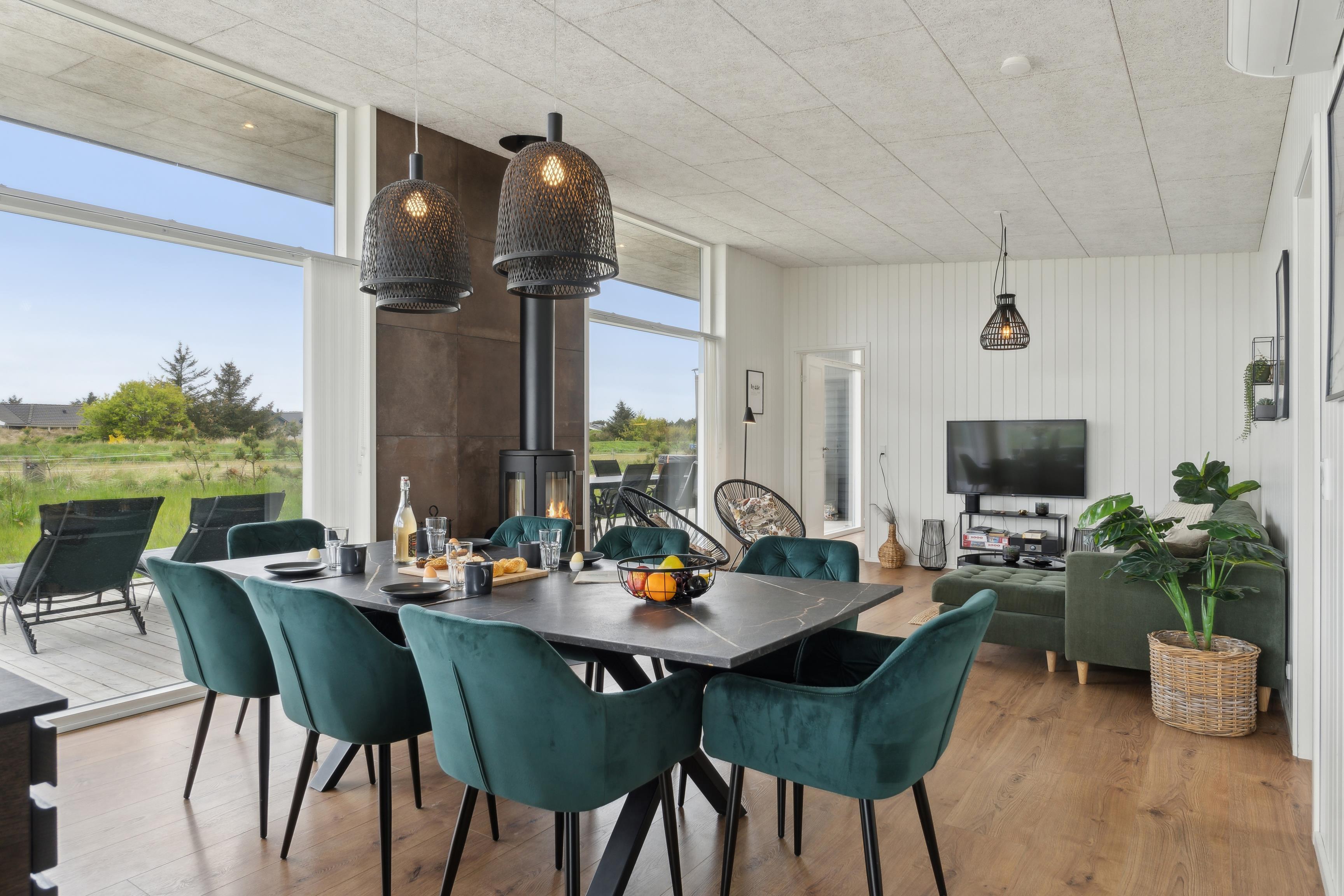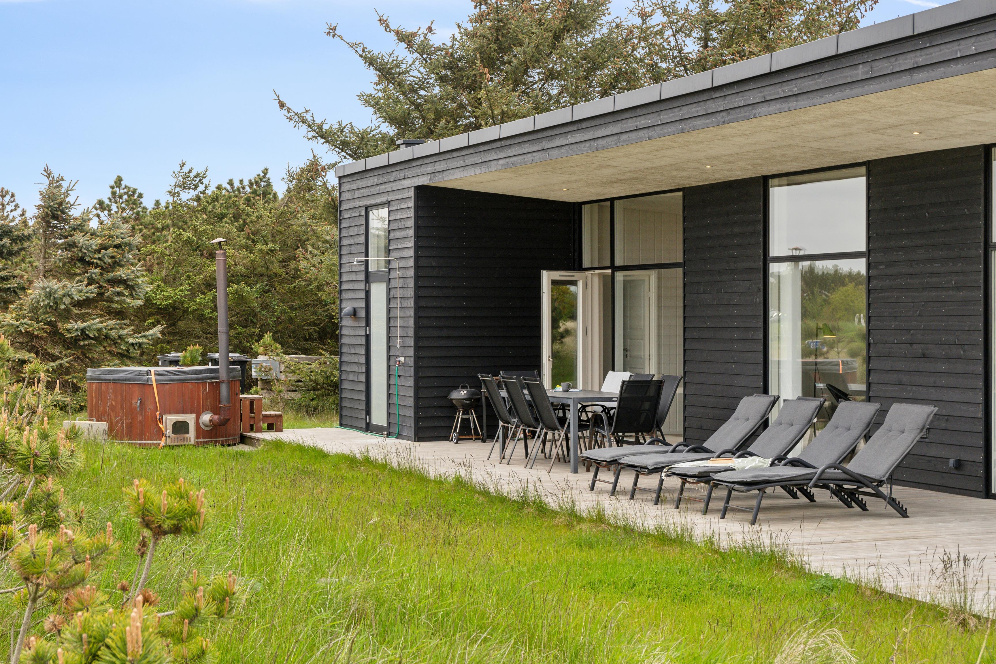 Moderne feriehus i Haurvig med sauna, vildmarksbad og aktivitetsrum nær Ringkøbing Fjord.