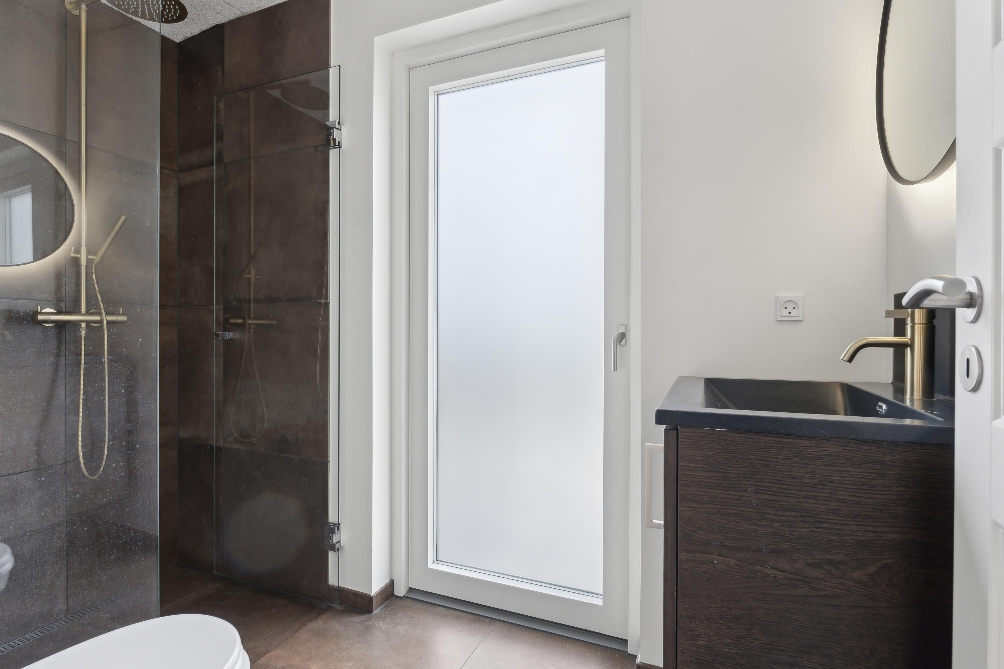 De store vinduer giver masser af naturligt lys og skaber sammen med den moderne indretning en indbydende og hyggelig atmosfære.