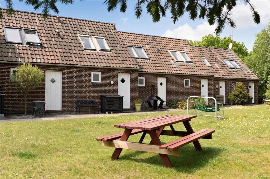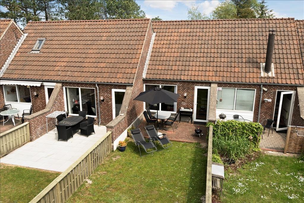 Fra stuen kan I træde lige ud på en sydvestvendt terrasse og videre ud på en grøn græsplæne. Jeres private udeareal er afskærmet og helt aflukket, hvilket er rart, hvis I har medbragt hunden. Har I små børn med på ferie, kan de gynge og lege i sandkassen på fællesarealet på den anden side af huset, og både store, små og sågar firbenede familiemedlemmer kan glæde sig til at udforske de smukke naturomgivelser.