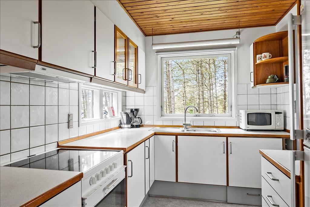 Vadehavsudsigten kan blandt andet nydes fra stuen, som er indrettet på klassisk sommerhusmanér med brændeovn, trælister på væggene og andre hyggeskabende detaljer. Her er skønt at sidde, uanset om morgensolen står op over vandet, eller om månen lyser den mørknende aftenhimmel op. Et andet dejligt opholdssted er havestuen, som kan bruges hele året rundt. Planløsningen byder desuden på et funktionelt køkken og to soveværelser med sengepladser til i alt fire personer. Baderum er der selvfølgelig også, og her skal det bemærkes, at det er opdelt, så der er separat bad og toilet.