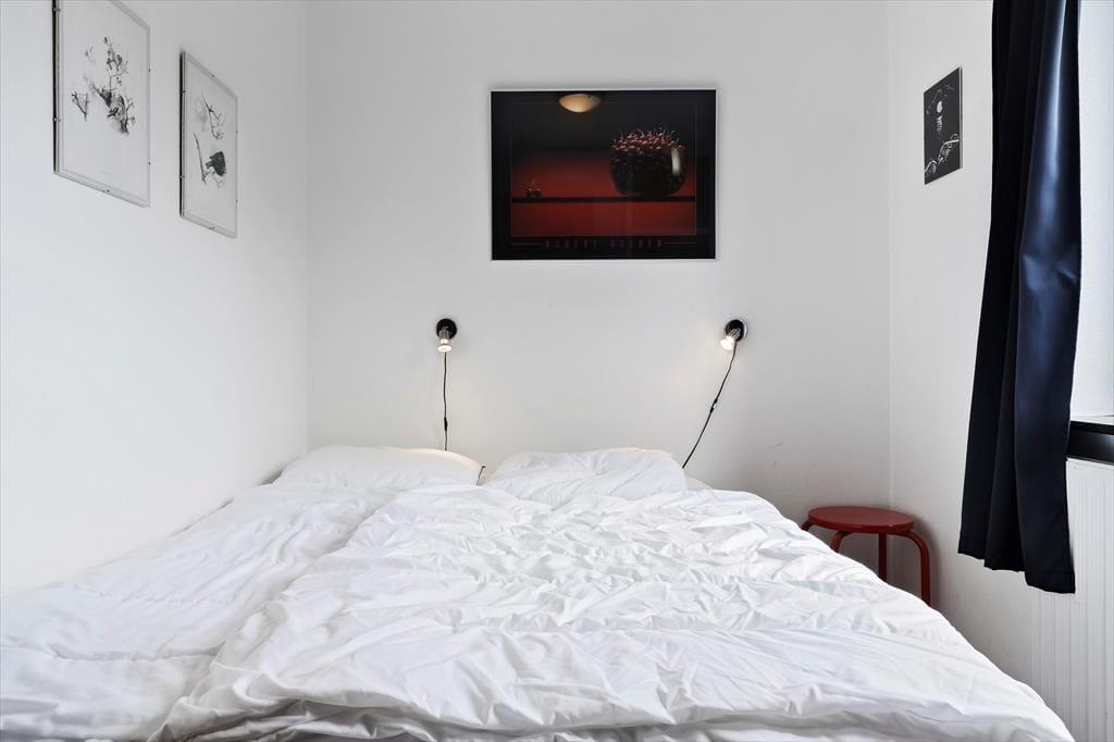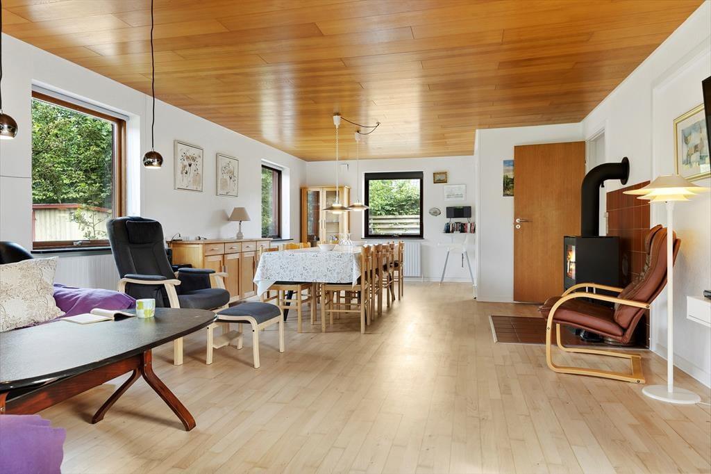 Renoveret sommerhus med brændeovn og lukket have