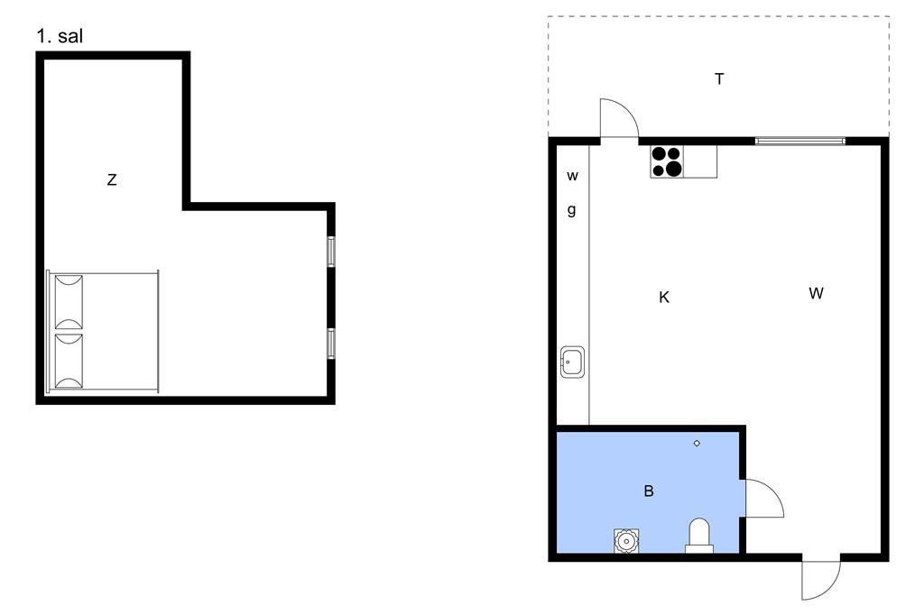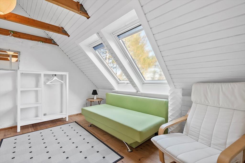 På 1. sal finder man et stort soveværelse med 1 dobbeltseng og 1 sovesofa. Der er desuden en dobbeltsovesofa i stuen, men bemærk venligst at huset ikke må bebos af mere end 4 personer!