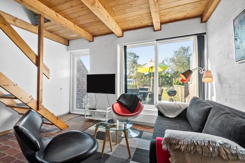 Takket være en grundig renovering præsenterer huset sig på særdeles pæn og velholdt vis. Fra entréen har I direkte adgang til et velindrettet badeværelse og et lyst opholdsrum, som består af stue og køkken i åben forbindelse. Når I har gjort morgenmaden klar, kan I samles om spisebordet og snakke om, hvad dagen skal bruges på. Står ferieprogrammet på rendyrket afslapning, kan I slå jer ned i stuens sofa for at læse, spille brætspil eller se en god film, og måske begiver I jer senere ud på en dejlig gåtur eller andre udflugter. Uanset hvad I finder på, har I en dejlig base at vende hjem til her i huset. Når det er sengetid, står en dejlig dobbeltseng og en sovesofa klar på førstesalen, og der er også en sovesofa i stueplan – i alt kan huset bebos af fire feriegæster, så I bestemmer naturligvis selv, hvordan sovefordelingen skal være.