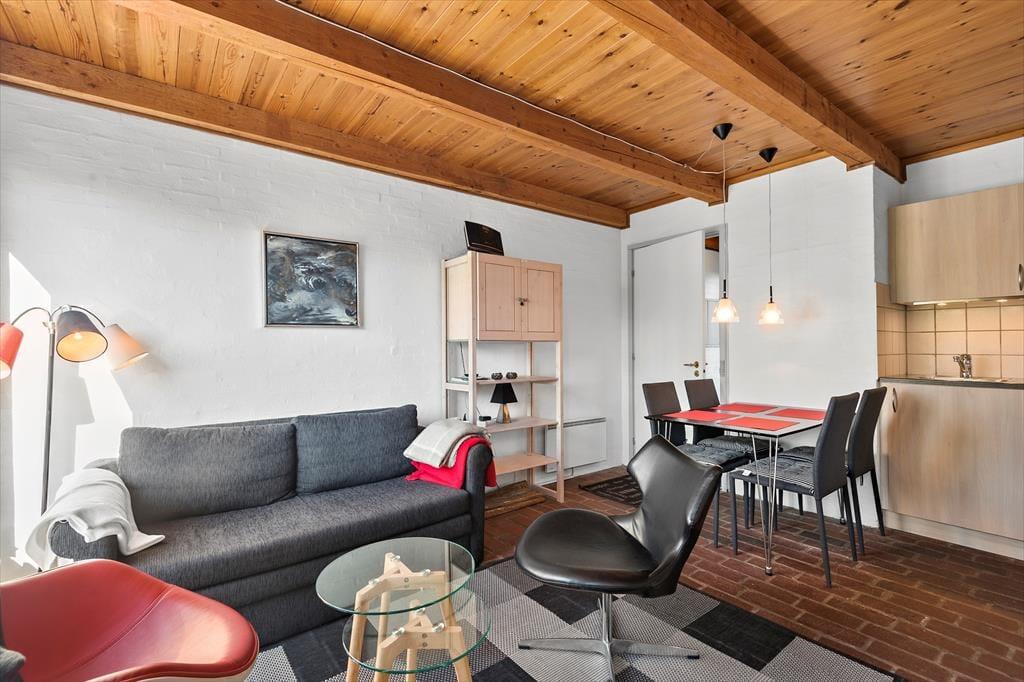 Både børn og voksne vil sætte pris på udefaciliteterne: De yngste feriegæster kan boltre sig på det grønne fællesareal, hvor der også er sandkasse, gyngestativ og andre legeredskaber til rådighed. Der er også plads til at lege på græsplænen i jeres private have, der ligger i forlængelse af en dejlig sydvestvendt terrasse. Har I hund med på ferie, er det en rar detalje, at jeres udeareal er helt aflukket.