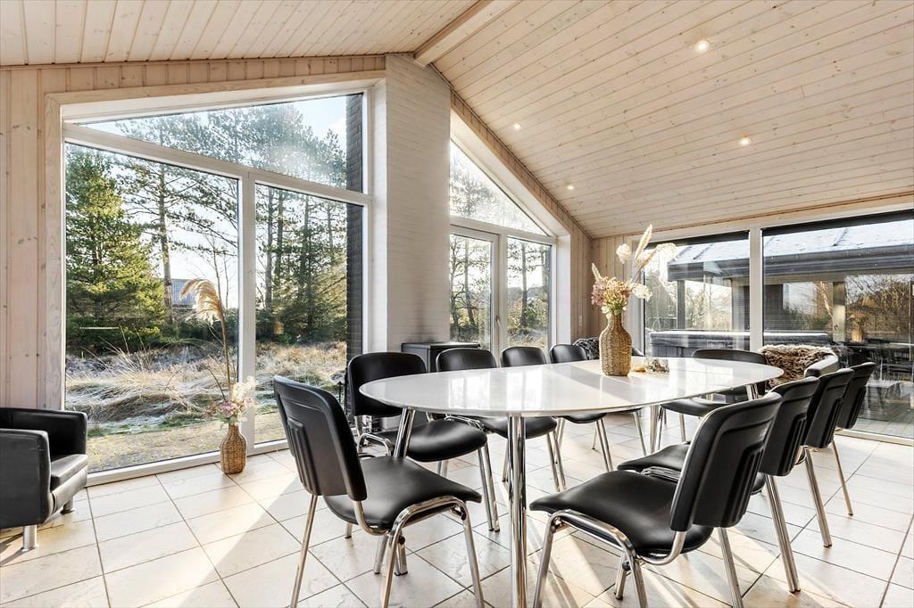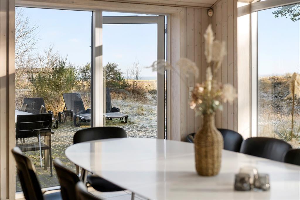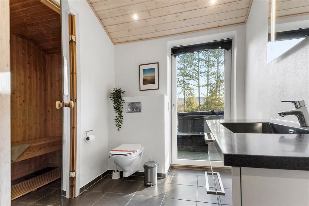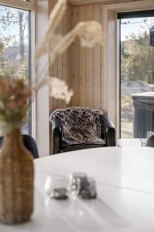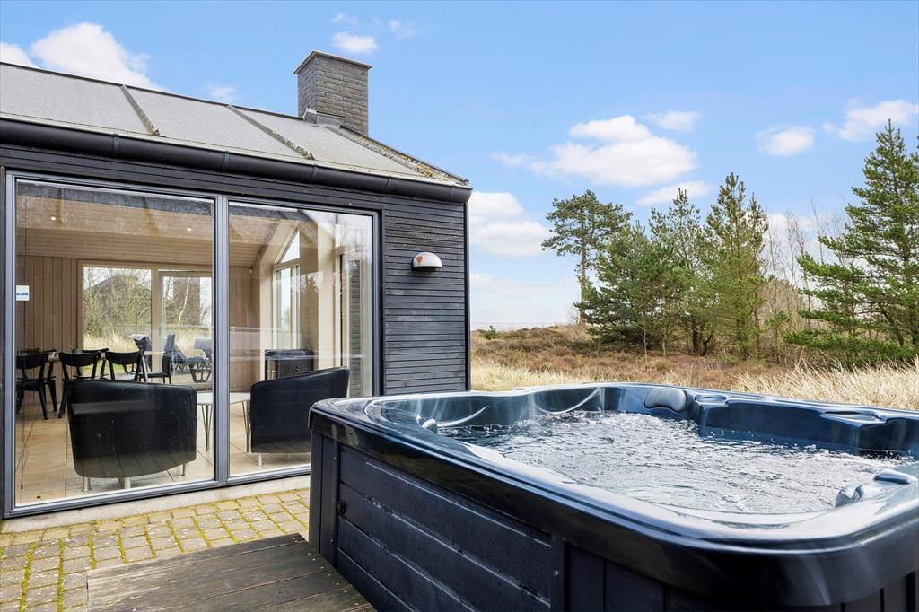 I sommerhuset er der en sauna, og den spiller smukt sammen med spabadet, der venter lige udenfor badeværelset på den sydvendte terrasse. Når du sidder i udespaen, kan du nyde udsigten til naturgrundens smukke bevoksning, og du kan endda lade blikke vandre videre mod øst, indtil det når Vadehavet. Er det ikke vejr til varme bade og saunature, kan du slænge dig i en af liggestolene i de naturskønne og fredfyldte omgivelser, og hvis du og dine kære beslutter jer for at grille om aftenen, kan I overveje, om det er på det overdækkede terrasseareal, at I skal dække op ved havebordet.