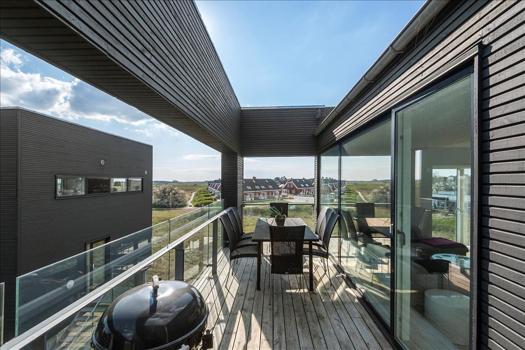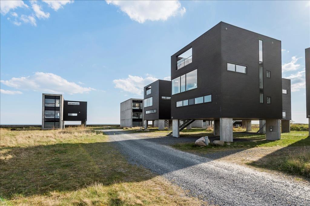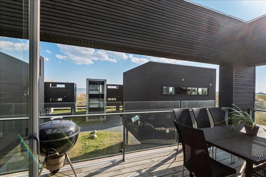 Et stort, sydvendt glasparti giver jer direkte adgang til sommerhusets skønne terrasse. Den vender også mod syd ud mod Vadehavet og kompleksets øvrige ferieboliger, der giver en flot, arkitektonisk kontrast til de naturskønne omgivelser. I har selvfølgelig havemøbler til rådighed, så I kan sidde og nyde ferielivet i stor stil, og der er også mulighed for at grille her på jeres egen private oase.