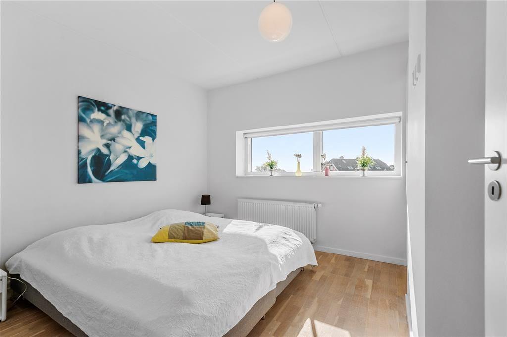 Da Arkitema Architects tegnede stregerne til sommerhuset, gjorde de en stor dyd ud af at tilpasse ferieboligen til de naturskønne omgivelser. Sommerhuset er derfor placeret på høje piller, så udsigten fra begge etager er glimrende – og som en praktisk detalje giver det plads til at parkere bilen under selve huset. En flot trappe giver jer en præsentabel ankomst til entréen i husets nederste plan, der også byder på et lækkert badeværelse og tre gode soveværelser. Opholdsrummet, som består af køkken og stue i åben forbindelse, er at finde på det øverste plan. Det store rum er elegant såvel som komfortabelt indrettet, og det gode lysindfald bidrager til den herlige rumfornemmelse.