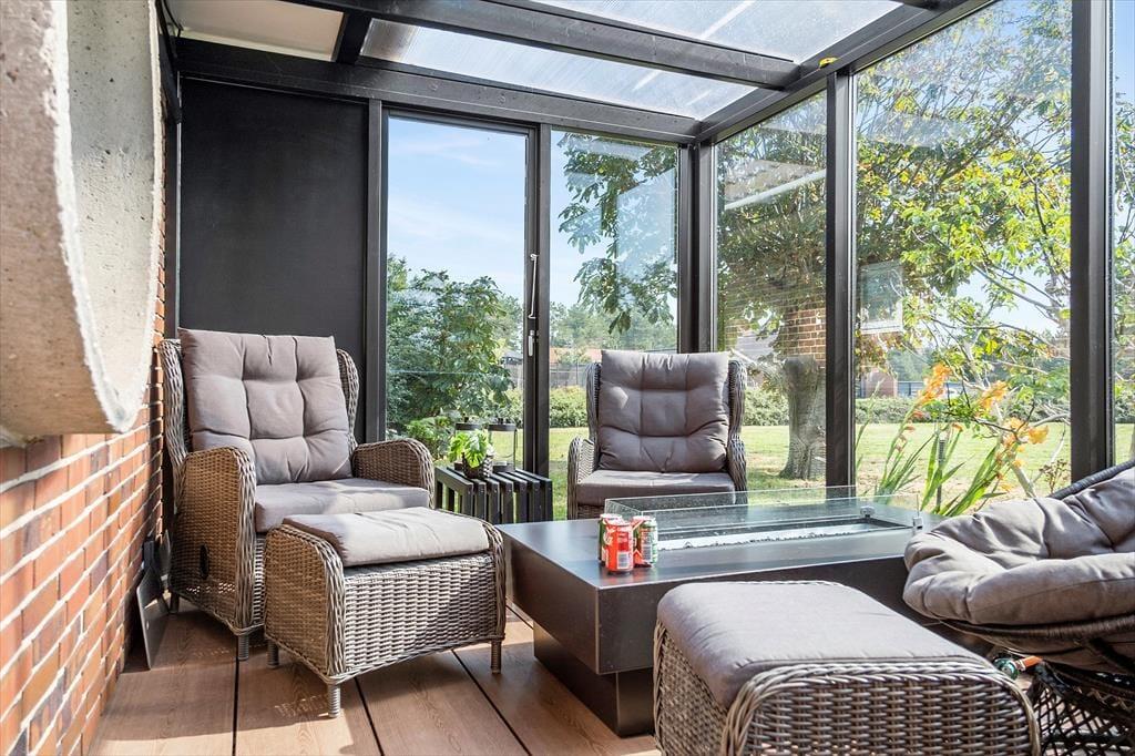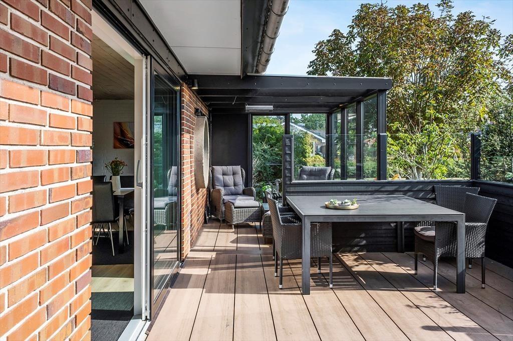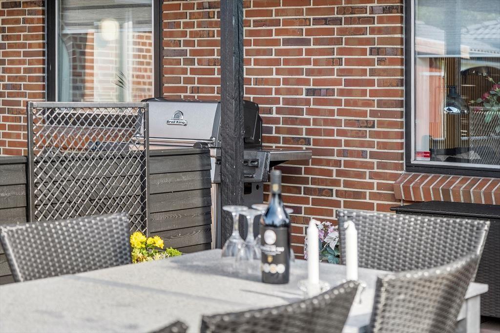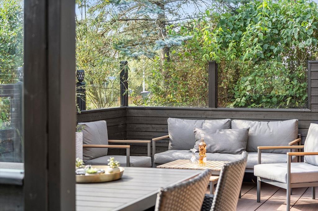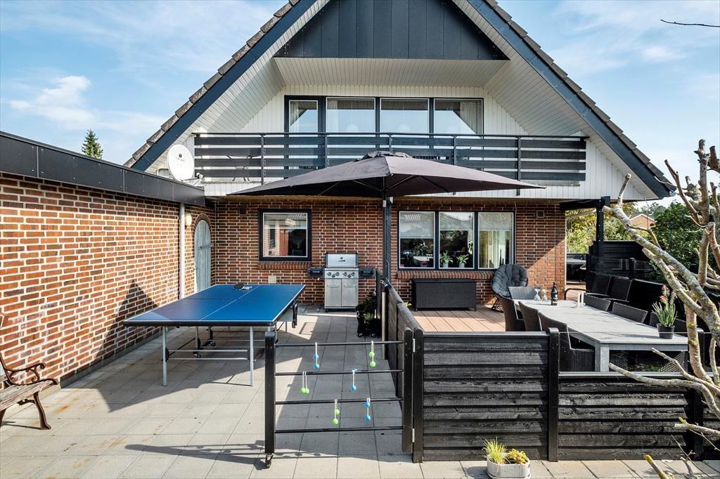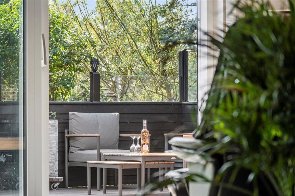 Ude i det fri er der flere skønne opholdspladser at vælge imellem. Fra førstesalens stue har I direkte adgang til en overdækket altan, og fra stueplan er det nemt at træde ud på husets gode, solrige terrassemiljø. En del af terrassen er overdækket og har glasvægge, så det nærmest føles som at sidde i en udestue, og derudover skærmes I for vind og indkig på de andre afskærmede terrassearealer. Til bilen er der en garage, og gasgrillen, bordtennisbordet og den store græsplæne bidrager alt sammen til, at I kan få et sjovt og afslappende udeliv her på Drosselvej 1.
