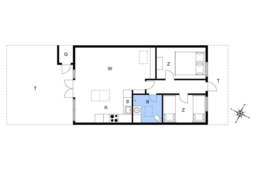 Ferieboligen er mere præcist et rækkehus, der er blevet nænsomt opdateret i 2013. Takket være den vellykkede modernisering præsenterer alle rum sig på indbydende vis med pæne møbler og hyggeskabende detaljer. I stuen, som er husets største rum, er lysindfaldet særdeles godt, for her er der nemlig et stort, vestvendt vinduesparti og et ovenlysvindue. Et moderne køkken er integreret i rummet, som derudover er udstyret med spisebord og flere komfortable siddemøbler. Planløsningen består derudover af to gode soveværelser og et badeværelse med bruseniche og vaskemaskine.