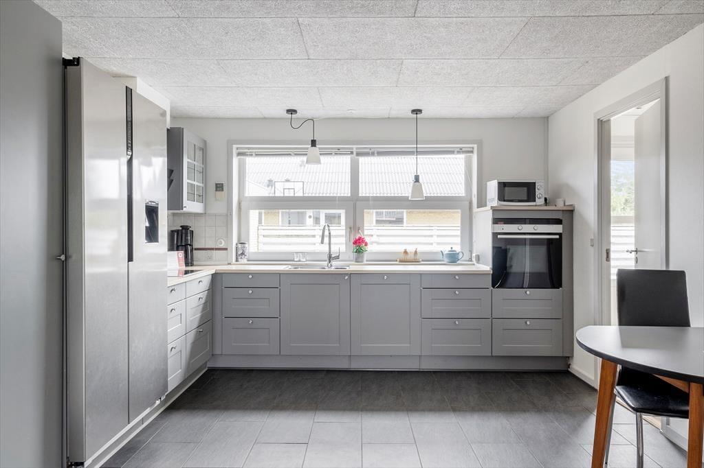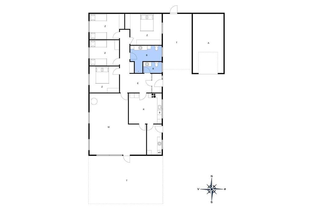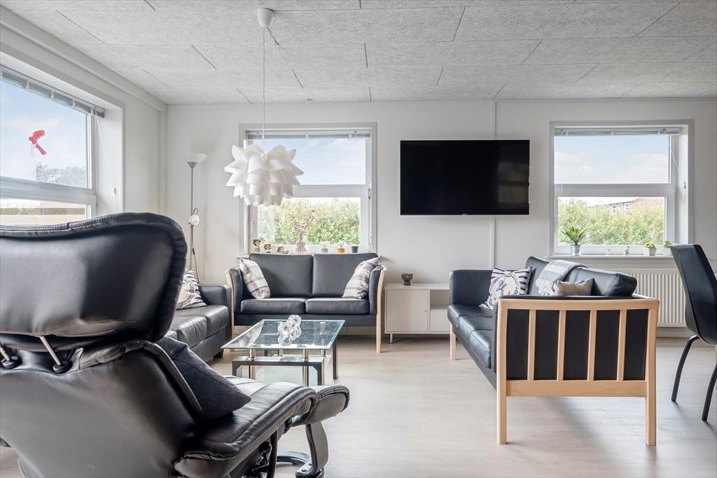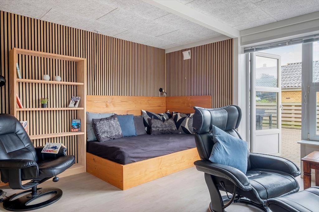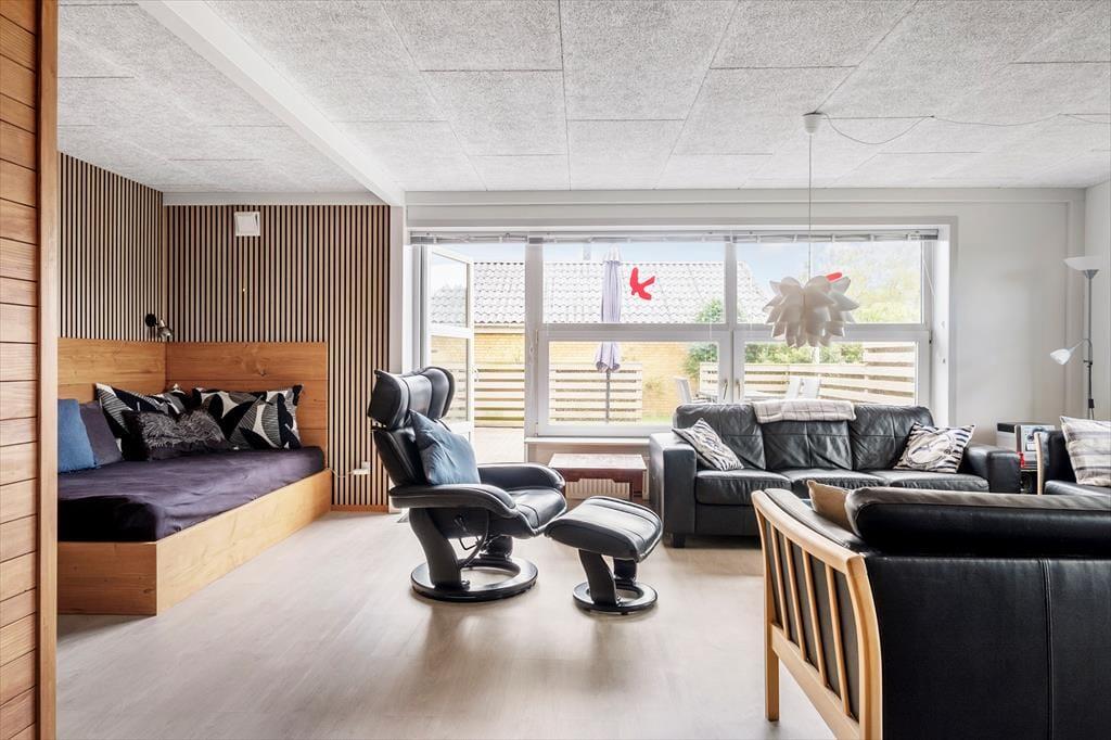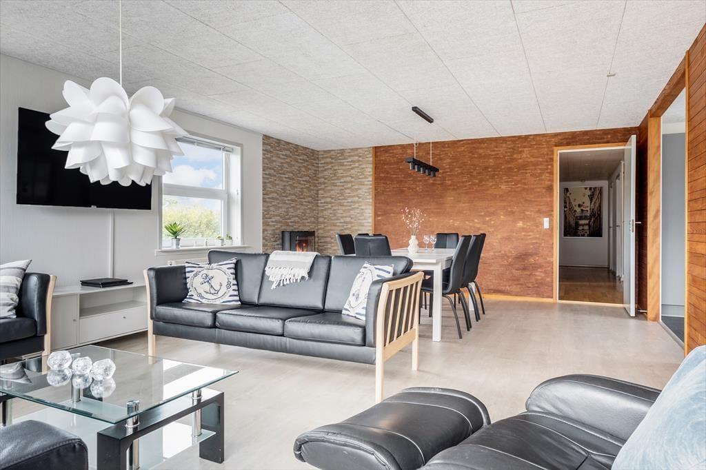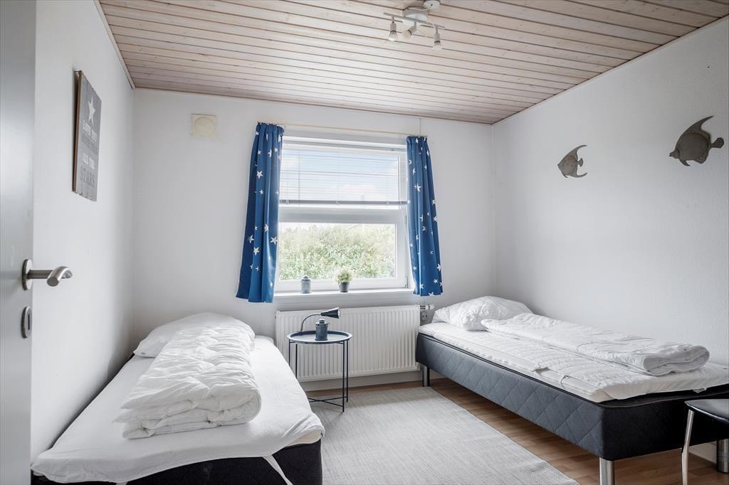 Det gedigne sommerhus i gule mursten vil danne rammen om mange former for ferieafslapning. I den store stue er der masser af plads til at lege, læse, spille spil og slænge sig i de bløde siddemøbler nær brændeovnen, og det 55” store internet-fladskærms-TV med danske og tyske kanaler samt en PlayStation 4, der også kan afspille DVD’er, kan også være med til at stå for underholdningen. Køkkenet ligger på praktisk vis lige ved stuen, og det er både stort og veludstyret, blandt andet med amerikanerkøleskab, keramiske kogeplader og ovn i arbejdshøjde, så I får gode arbejdsforhold, når de lækre feriemåltider skal tilberedes. Der er også gode forhold på de fire soveværelser, hvoraf to er indrettet med dobbeltseng, og to er indrettet hver især med to enkeltsenge. Endelig byder planløsningen på et badeværelse og et gæstetoilet, begge med gulvvarme, og et bryggers med vaskemaskine og tørretumbler – så kort sagt finder I alt, hvad I skal bruge inden døre.