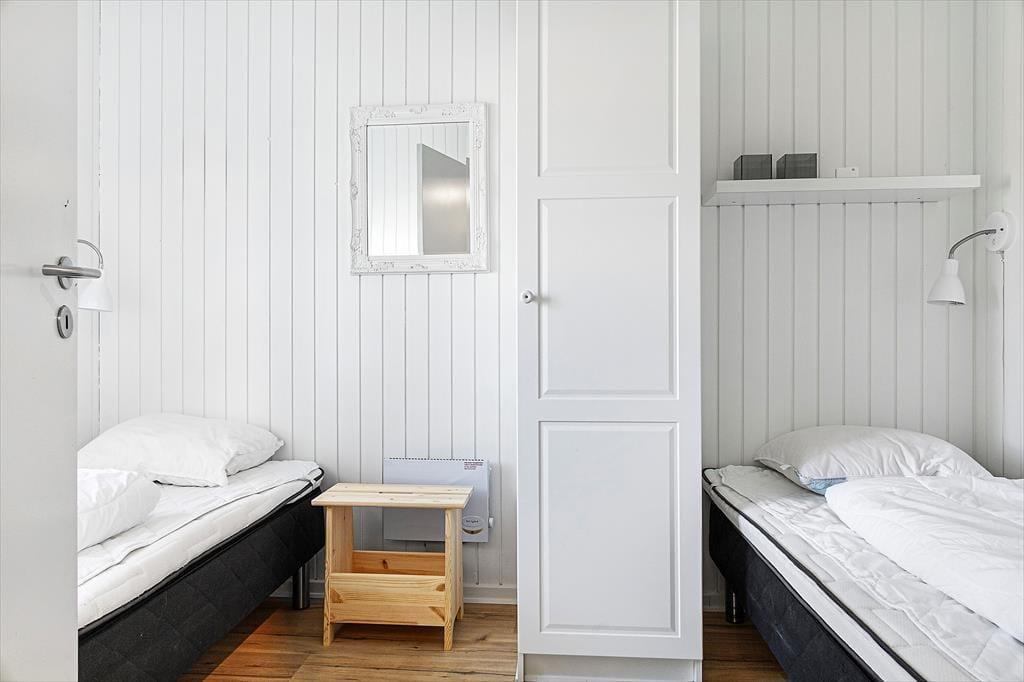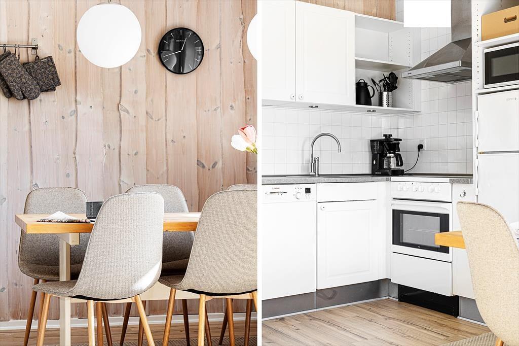 Lejligheden, der ligger i stueplan i en solid rødstensejendom, blev renoveret på gennemført og omsorgsfuld vis i 2015. Indretningen er både hyggelig og komfortabel, og med lyse trælister på væggene, profilerede døre og flere fine detaljer er den klassiske, skandinaviske sommerhuscharme helt i top. Planløsningen byder på to soveværelser, der begge er indrettet med to enkeltsenge. Ferieboligen rummer naturligvis også et badeværelse og sidst, men ikke mindst, et stort opholdsrum med integreret køkken. Det veludstyrede køkken er et dejligt sted at hygge om madlavningen, mens resten af familien slapper af i sofaafdelingen eller spiller terninger ved spisebordet.