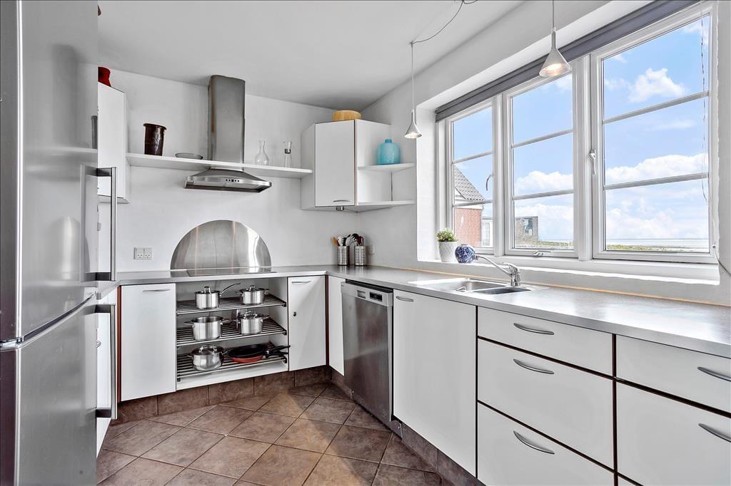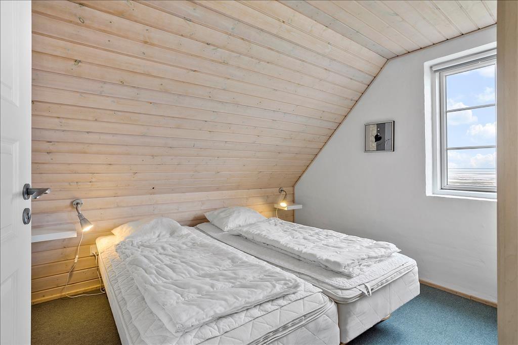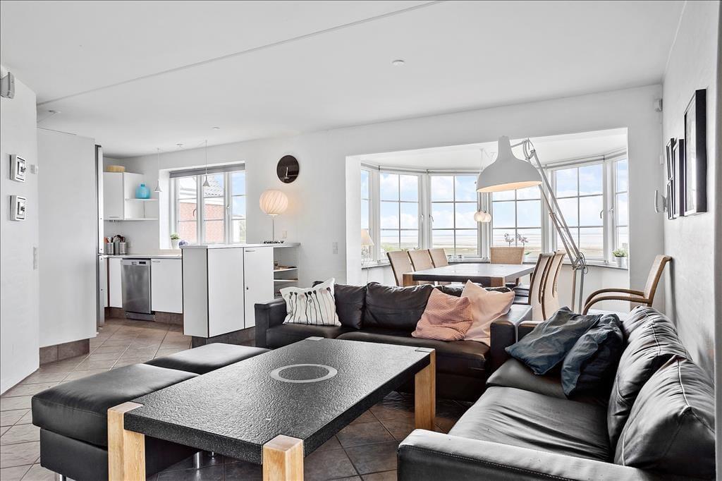 Ferieboligen er et halvt dobbelthus i to plan – plus en hems helt i top med to ekstra sovepladser. Tilsammen med de seks sovepladser fordelt på tre soveværelser kan huset rumme otte gæster, så I kan sagtens invitere vennerne eller svigerfamilien med på ferie. Badeværelser er der to af, og de er lyst og moderne indrettet ligesom resten af husets rum. Stueplanets badeværelse er udstyret med sauna, og på førstesalens badeværelse venter et lækkert spabad, som ligefrem er placeret med udsigt til Vadehavet. Det naturskønne panoramavue kan også nydes, når I hygger jer i stueplanets store opholdsrum – både fra det åbne køkken og fra spisepladsen ved den solrige karnap. Rummet er desuden indrettet med en skøn sofaafdeling, og der er både gulvvarme og brændeovn, så huset kan benyttes hele året rundt.