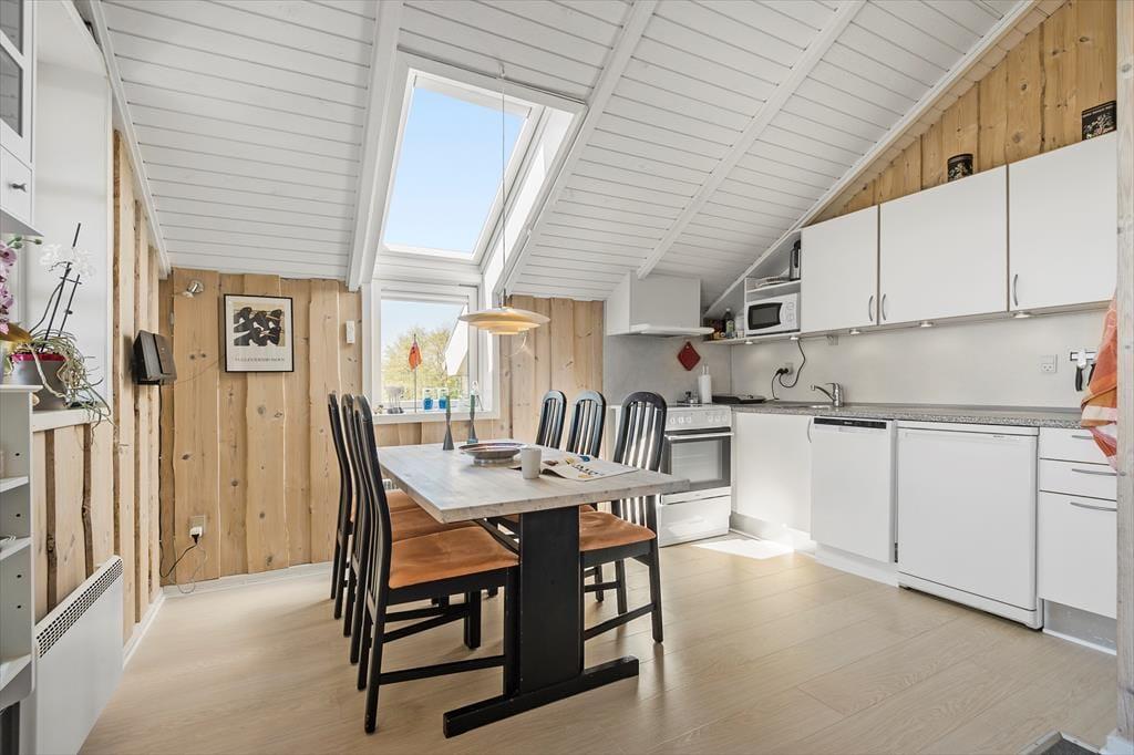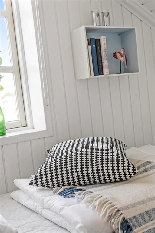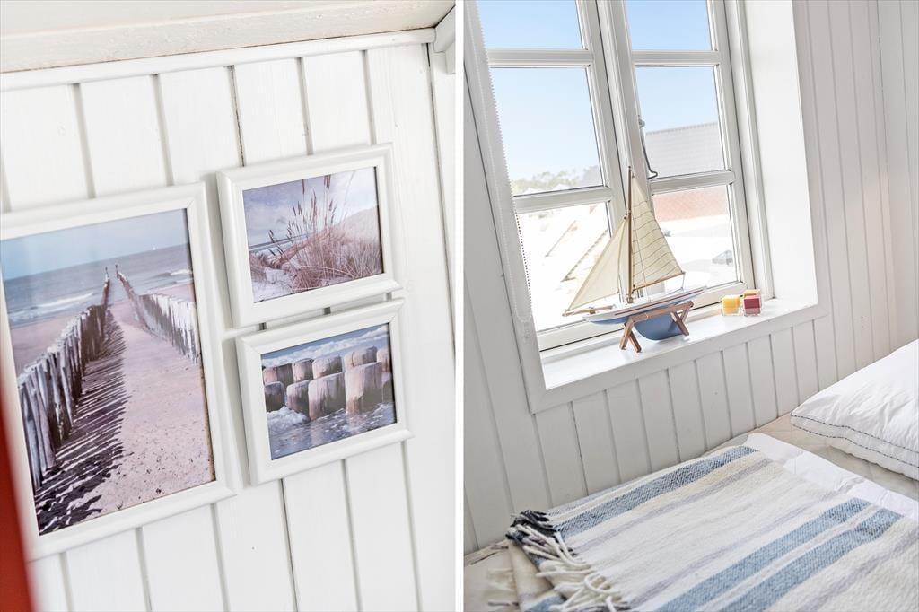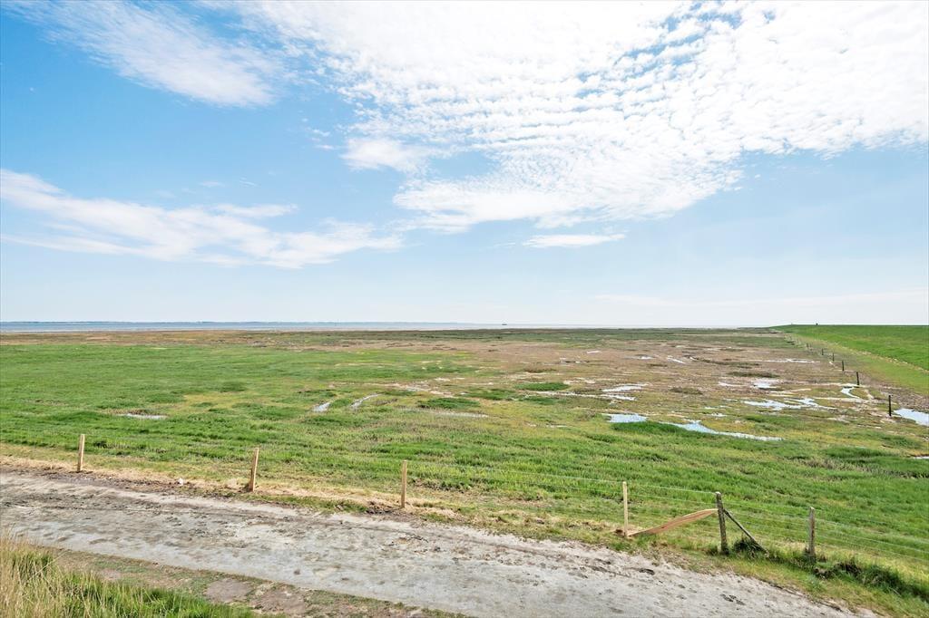 Ikke kun fra altanen, men også fra stuen kan I se ud på det flade vadehavslandskab og følge med i, hvordan færgen og andre fartøjer glider forbi ude på vandet. Sådan en udsigt passer godt til feriens rolige stunder, hvor I hygger jer med en god kop kaffe og en spændende krimi – eventuelt i skæret af flammerne, hvis årstiden indbyder til at tænde op i brændeovnen. Et lyst køkken er integreret med stuen, og fra ferielejlighedens gang har I adgang til et pænt brusebadeværelse og tre soveværelser, hvoraf et er indrettet med dobbeltseng, og de to andre med hver især to enkeltsenge.