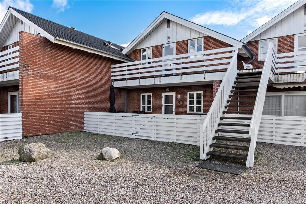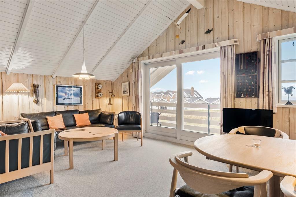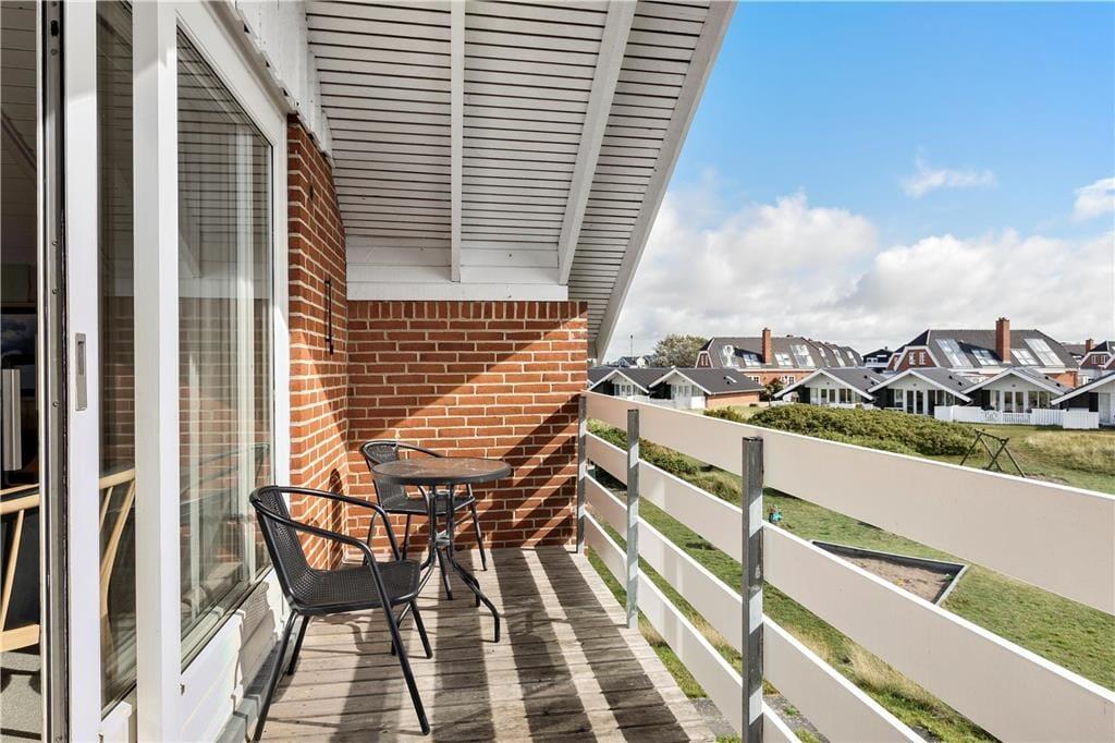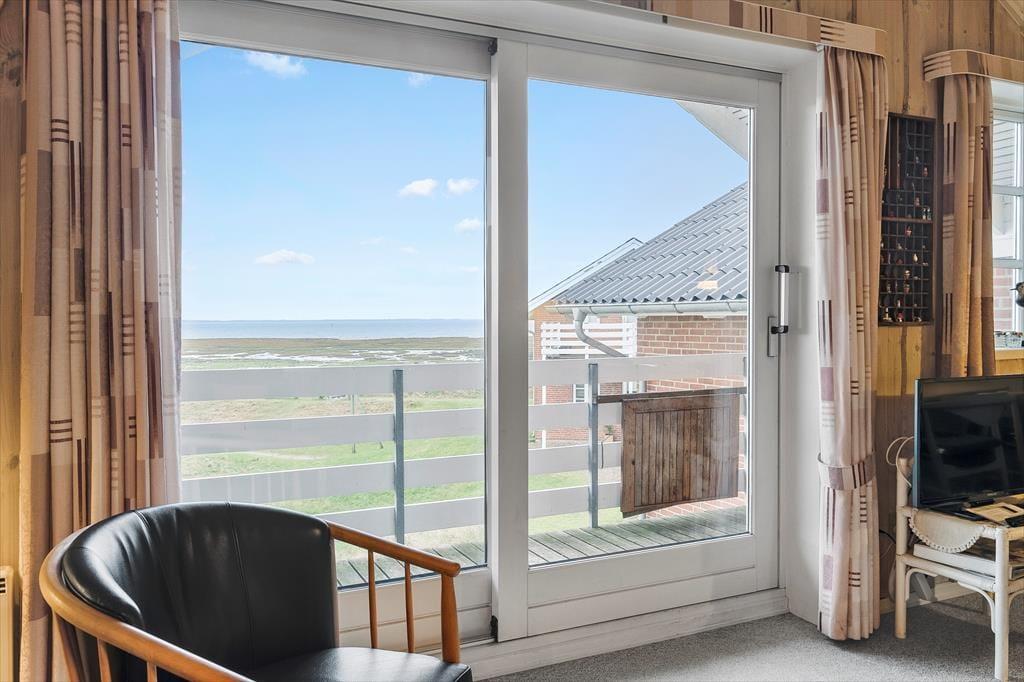 Lejligheden ligger på første sal i en gedigen rødstensejendom. Første sal er også øverste sal, og derfor er der loft til kip, hvilket gør rumfornemmelsen ekstra let og luftig. Farvetonerne er lyse overalt, både på de tre soveværelser, på badeværelset og i stuen. Sidstnævnte er lejlighedens største rum, og det er både praktisk og komfortabelt indrettet med bløde sofaer, tv, spisebord og en integreret køkkenafdeling. Rummets store vinduesparti med skydedøre åbenbarer den fine udsigt til Vadehavet og giver jer direkte adgang til altanen, så den fungerer som en herlig udendørs udvidelse af lejligheden.