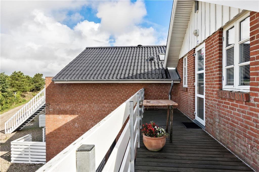 Altanen er et skønt sted at nyde sommervejret og ferielivet i roligt tempo. Her er havemøbler, så I kan sidde komfortabelt, mens I kigger ud over Vadehavet og det grønne kystlandskab. I kan også se ned på feriecentrets legeplads, så hvis I har børn med på ferien, kan de selv smutte ned for at spille bold og gynge. Fra terrassen ved hoveddøren har man en dejlig udsigt over grønne arealer, og her kan man især nyde eftermiddagssolen.