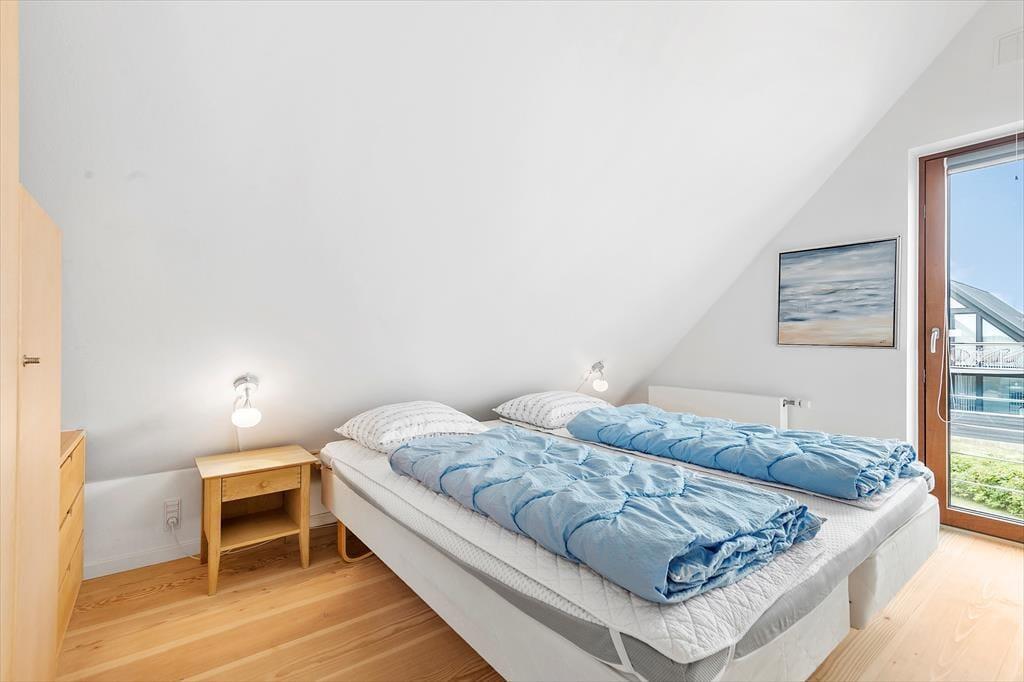 Vi har her at gøre med et kvalitetsbyggeri fra 2007, som er opført i ordentlige materialer og indrettet med stilsikker sans. Værelser er der tre af: På førstesalen ligger to soveværelser, mens husets masterbedroom er placeret i stueplan. De to badeværelser er også fordelt på hver sin etage – her skal især stueplanets badeværelse bemærkes, for det er på luksuriøs vis udstyret med både spabad og sauna. Endelig er der også opholdsrum både oppe og nede, for i stueplan venter et dejligt køkken-alrum.