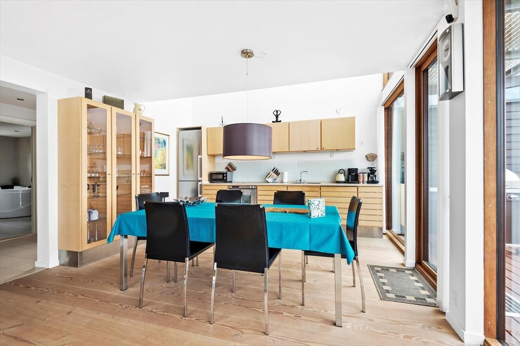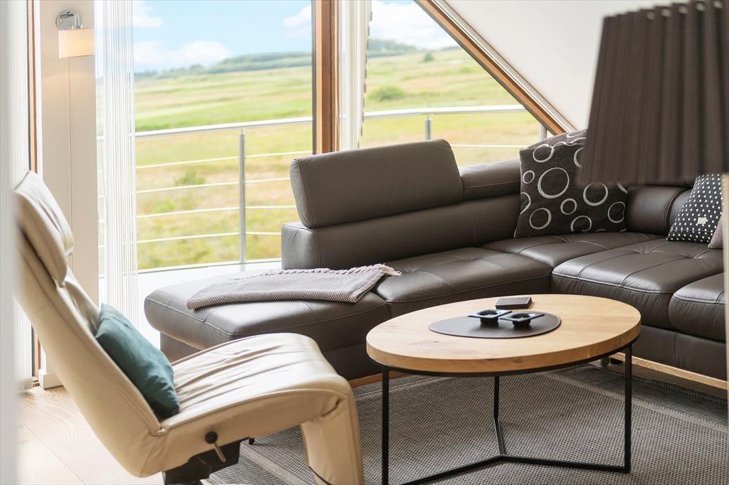 Rummet er ikke bare veludstyret på køkkenfronten, men byder også på et godt musikanlæg samt digital radio, så du kan høre god musik, når du kokkerer. Vil du se en god film, er det i førstesalens stue, det foregår – men det kræver godt nok, at du kan løsrive blikket fra den flotte udsigt over golfbanen og mod Vadehavet.