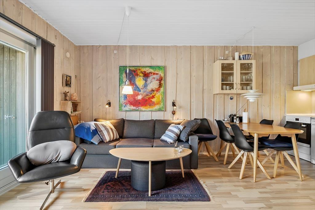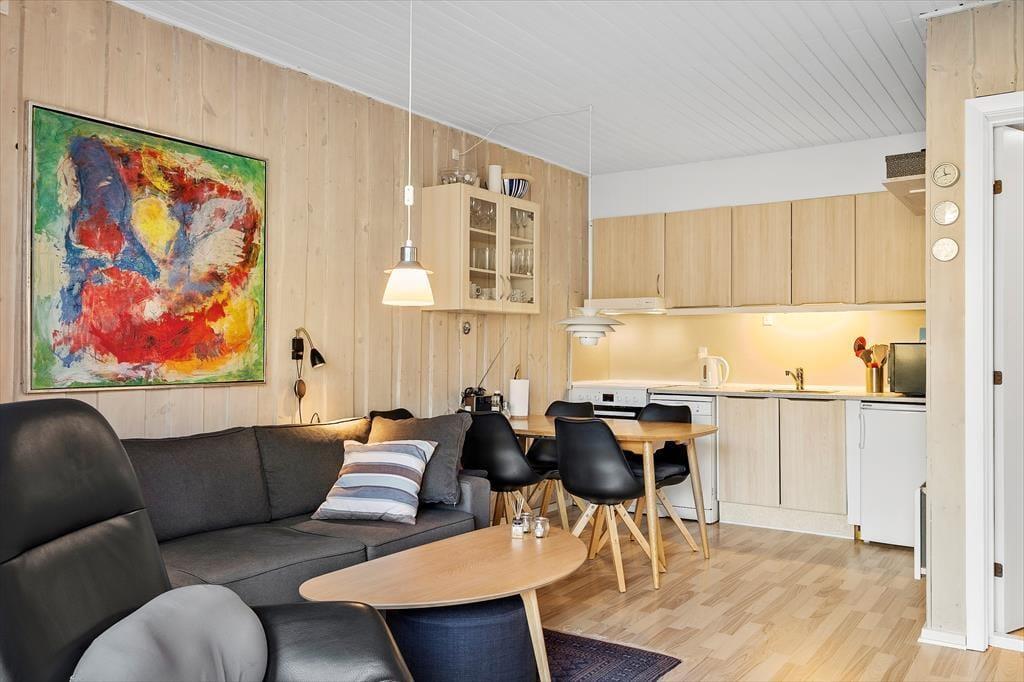 Stuelejlighedens 48 m² er fornuftigt indrettet, så det er muligt at være op til fire personer og et husdyr inden døre. To personer kan sove på dobbeltsengen på værelset, og derudover er der plads til yderligere to på sovesofaen i stuen. I løbet af dagen er det hyggeligt at samles i stuen for at spille yatzy, se film eller hvad, I nu holder af at gøre, når det er ferietid. Måltiderne kan let trylles frem i det åbne køkken, og takket være opvaskemaskinen er det også nemt at rydde af efterfølgende.