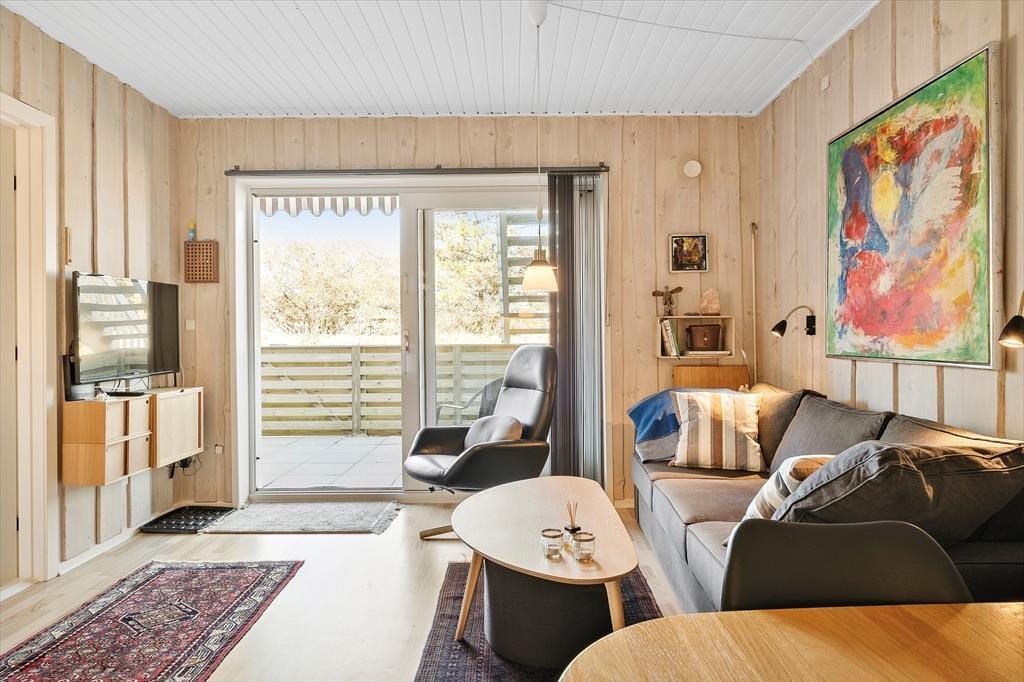 Fra stuen har I direkte adgang til en dejlig terrasse, så den fungerer som en god forlængelse af opholdsrummet, når vejret er lunt og sommerligt. Terrassen er helt aflukket med hegn, og der er markise, som I kan tage i brug, hvis I trænger til skygge. Efter en god siesta får I måske lyst til at komme op af havestolene, og i så fald er det fantastisk at have fri adgang til Rømø Strands aktivitetsområde, der blandt andet byder på legeplads, tennisbane og bordtennisbord.