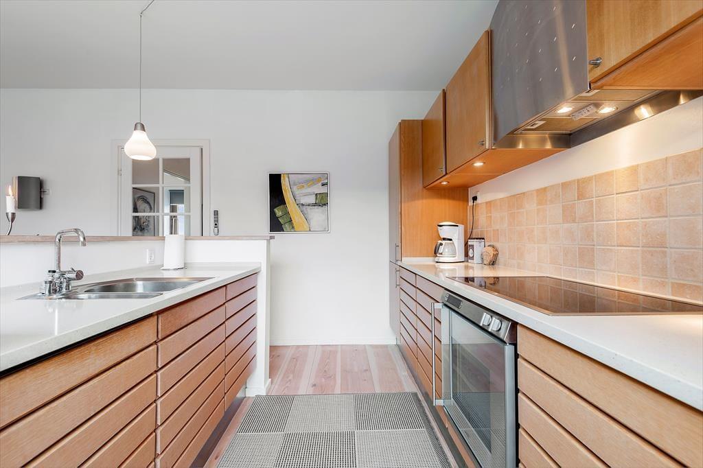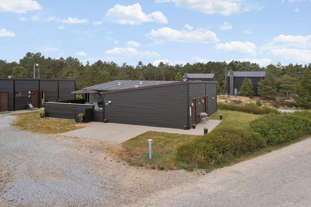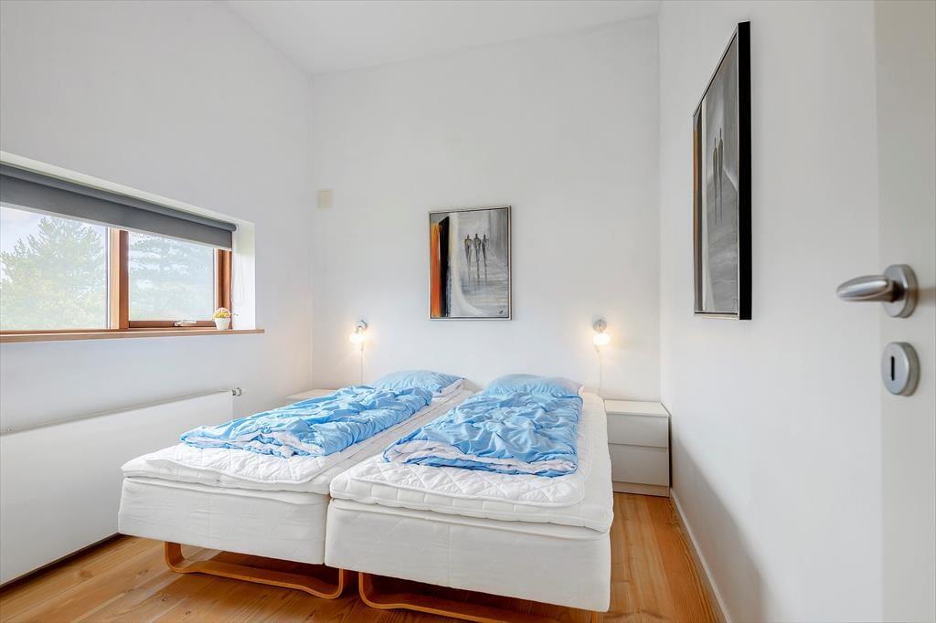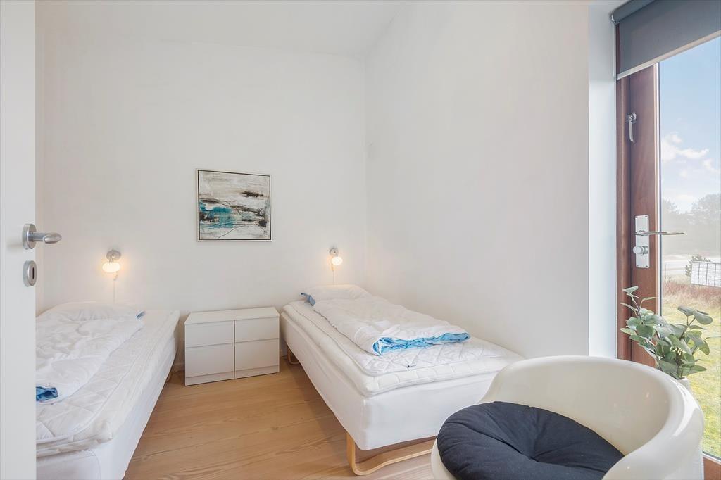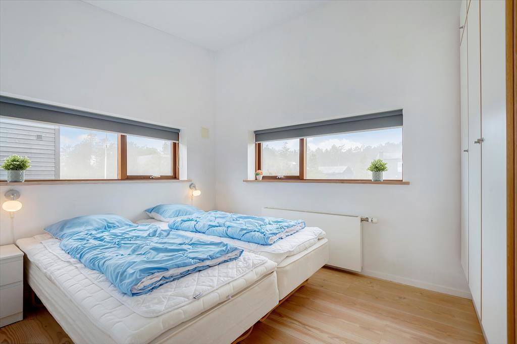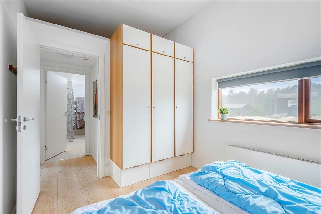 Sommerhuset hører til den arkitekttegnede bebyggelse ”Havhusene”, som Ginnerups Tegnestue står bag. Husene har samme enkle og harmoniske udtryk, men varierer i størrelse og indretning. Netop dette hus har en praktisk indretning i ét plan, og det er fuldt af smagfuldt møbeldesign og en herlig atmosfære. Husets tre soveværelser er alle udstyret med brede dobbeltsenge, mens et fjerde og mindre rum fungerer godt som en ekstra hyggekrog.