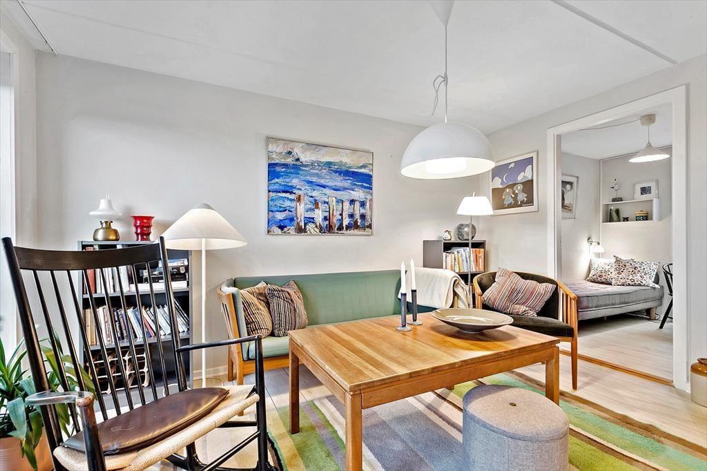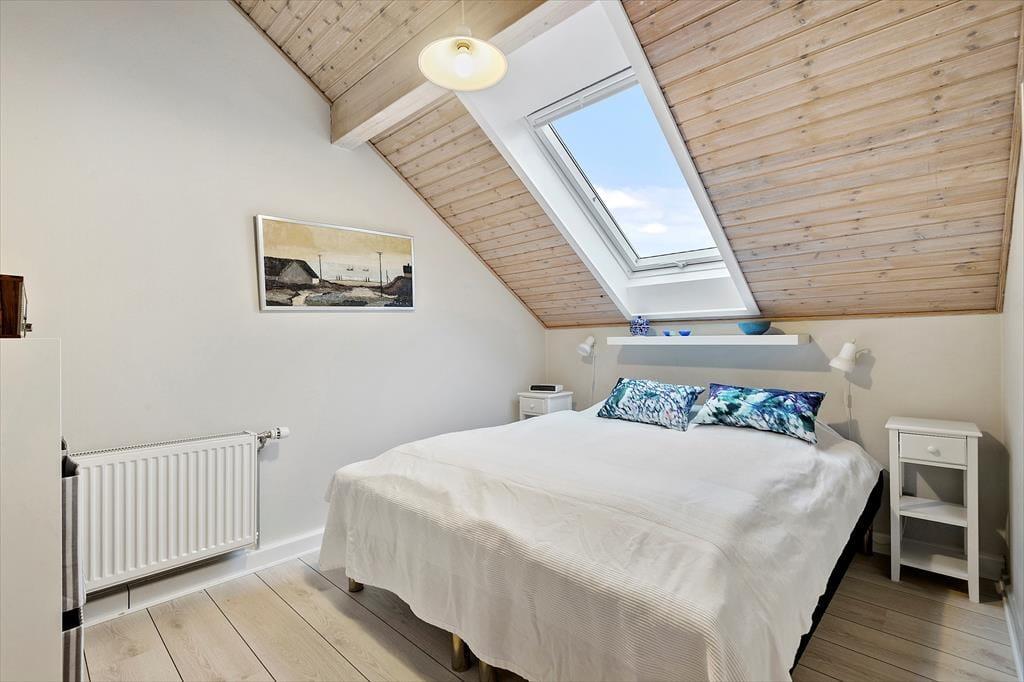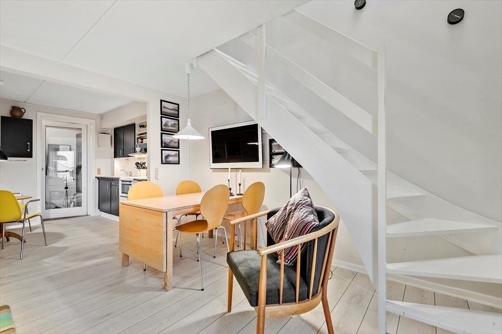 Rækkehuset er opført i 1986 og er sidenhen blevet moderniseret på vellykket vis. Inden døre er atmosfæren god, både på de tre soveværelser og i opholdsrummet, hvor køkkenet og stuen er integreret. Alle rum er pænt indrettet, også badeværelset, som er placeret på førstesalen. Køkkenet er et velordnet og funktionelt et af slagsen. Her er spiseplads, mens stuen byder på komfortable lænestole og en blød sofaafdeling. Der er også tv, hvis I er i humør til en god film – med mindre I falder I staver over den naturskønne udsigt, som vinduerne åbenbarer.