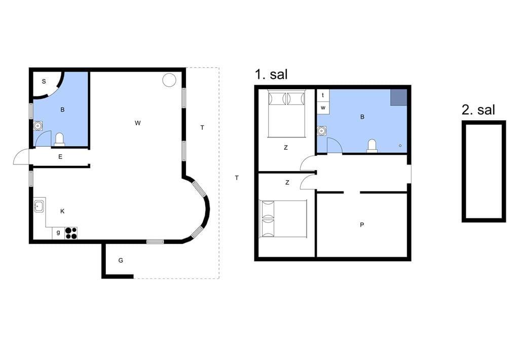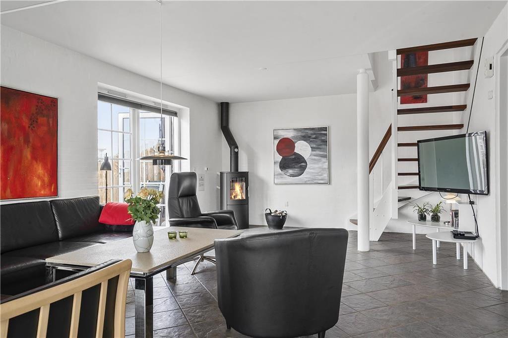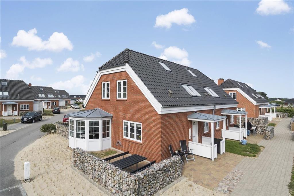 Ferieboligen udgør den ene halvdel af et muret dobbelthus, som er et energivenligt kvalitetsbyggeri med solvarmeanlæg. Husets høje standard kan også fornemmes inden døre: I stueplan såvel som på førstesalen er atmosfæren lys og indbydende, og alle rum er smagfuldt indrettet med komfortable møbler. Størstedelen af stueplanets kvadratmeter er dedikeret til et herligt opholdsrum med stue og køkken i åben forbindelse. Her er både gulvvarme og brændeovn, og køkkenet er veludstyret, så I behøver ikke at gå på kompromis med feriemadlavningen. Spisebordet er placeret ved en solrig karnap, og herfra kan I beundre havudsigten, mens maden nydes. To gode soveværelser med dobbeltseng ligger på førstesalen, og derudover har I adgang til en hems med sækkestole og to madrasser – her kan familiens yngste medlemmer oplagt installere sig. Huset har to gode badeværelser, det ene med spabad.
