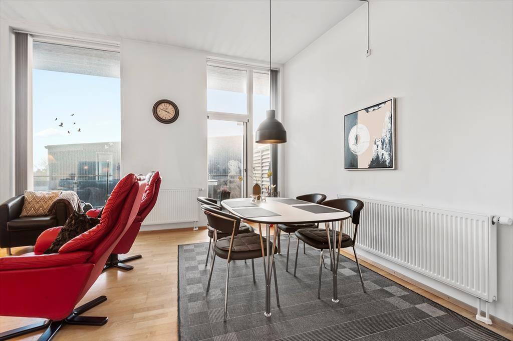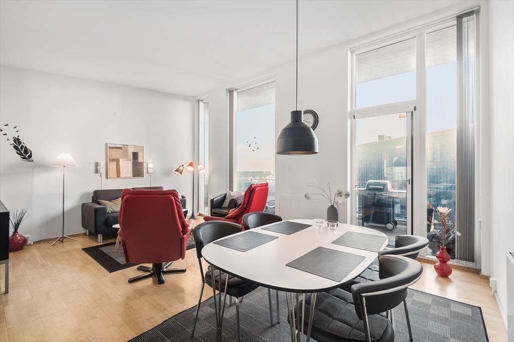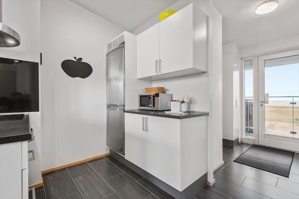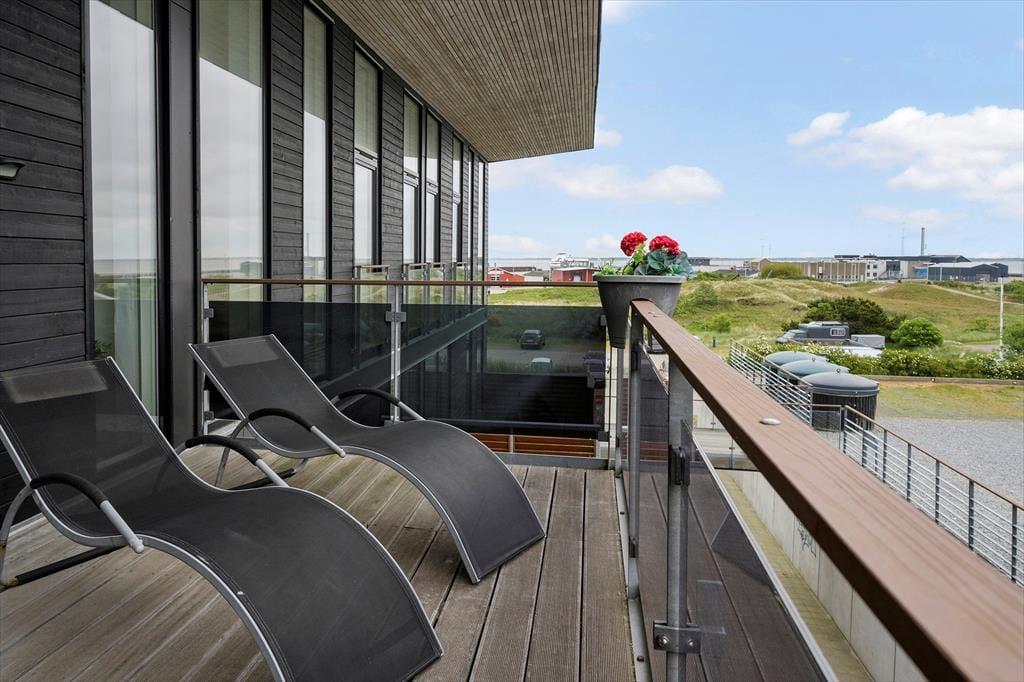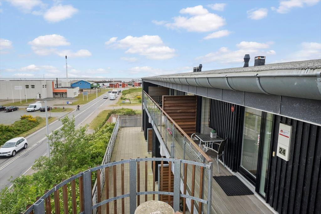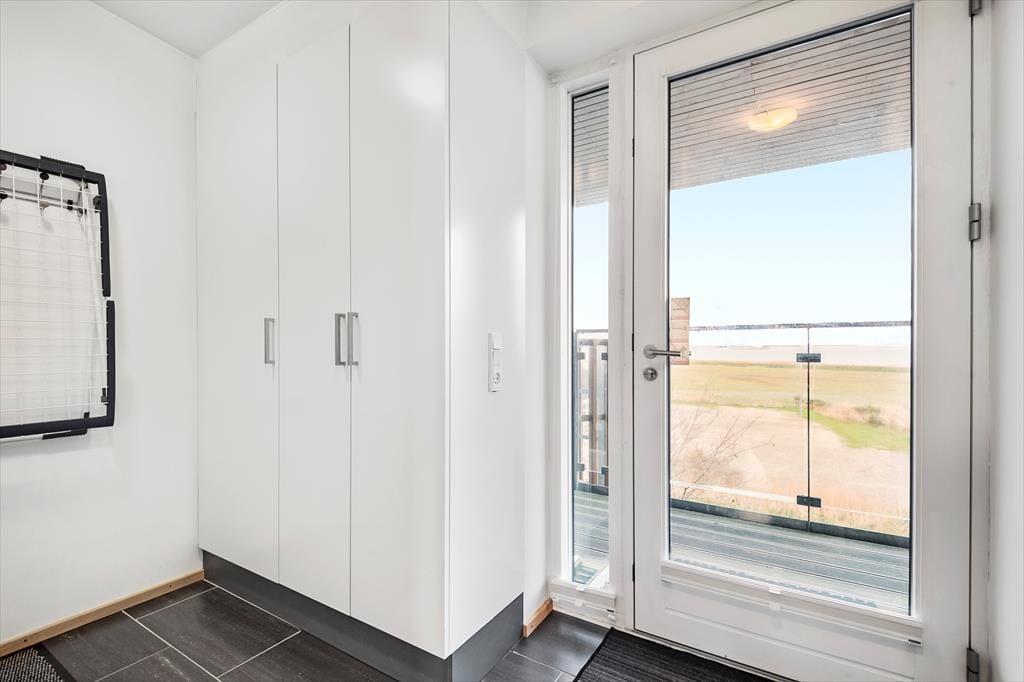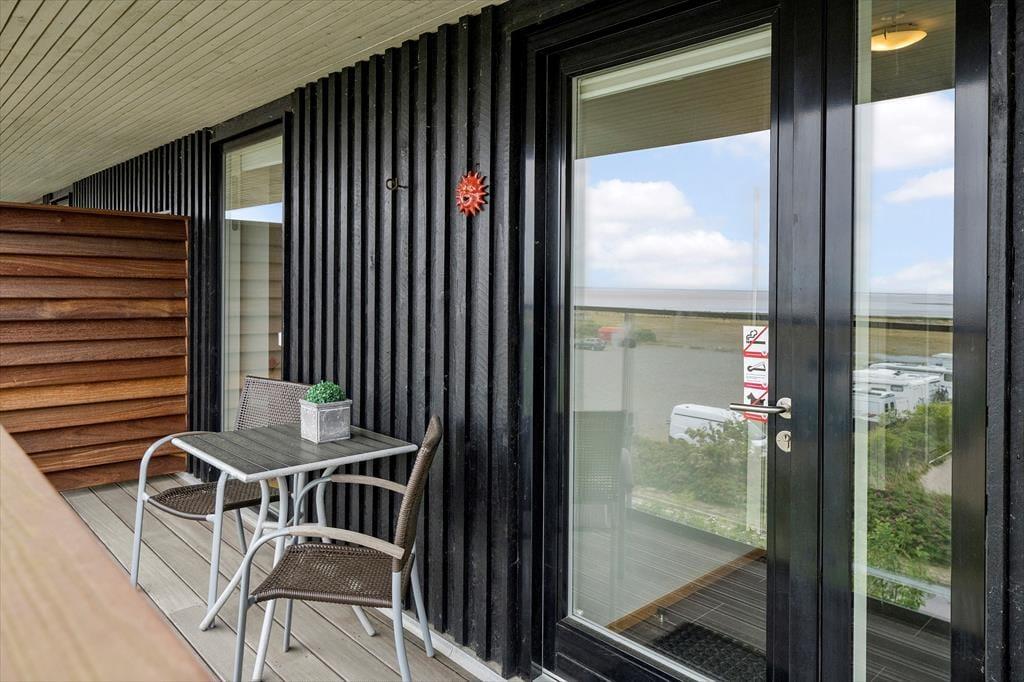 Fra opholdsrummet kan I træde direkte ud på lejlighedens sydvendte altan, når I trænger til solbeskinnet pause i en liggestol. Der er også grill og havebord til rådighed, så I både kan tilberede og nyde aftensmaden ude i det fri, mens I følger med i torvelivet under jer og skuer ud over Havneby. Her på altanen kan I se helt ud til diget, mens svalegangen på den anden side af lejligheden byder på en fantastisk udsigt lige ud til Vadehavet.