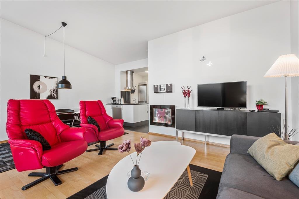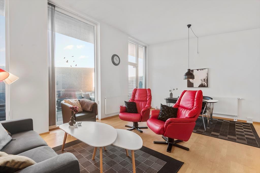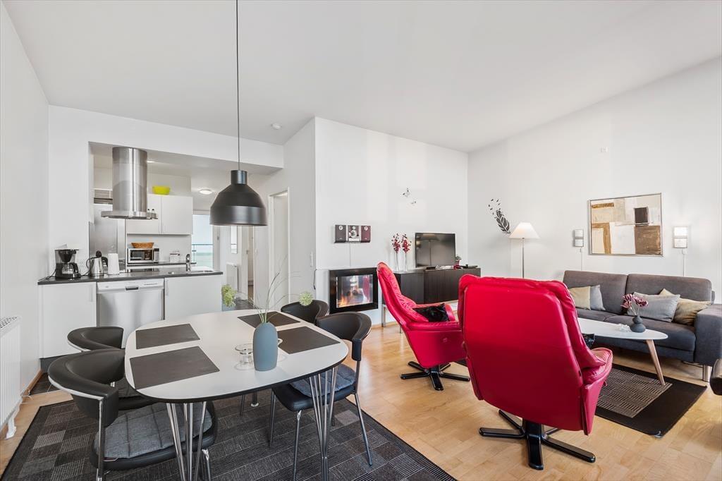 I ferieboligen, der nærmere bestemt ligger øverst oppe i det flotte lejlighedskompleks Skansen, kan I brede jer på 62 m². Inden døre er indretningen helt i top – også i det store opholdsrum med integreret køkkenafdeling. Foruden et veludstyret køkken er rummet smagfuldt indrettet med spisebord, fladskærms-tv, biopejs og bløde siddemøbler, inklusiv en sovesofa til to personer. Planløsningen byder desuden på et soveværelse med dobbeltseng, hvor man kan ligge i sengen og kigge på morgensolen, samt et rummeligt badeværelse med bruseniche. Entréen er også udstyret med vaskemaskine og tørretumbler og opvarmes samtidig med fjernvarme. Kort sagt, alt hvad I skal bruge for at få en komfortabel og hyggelig ferie!