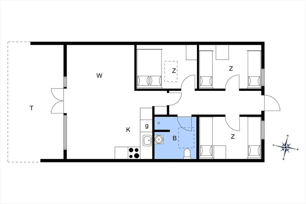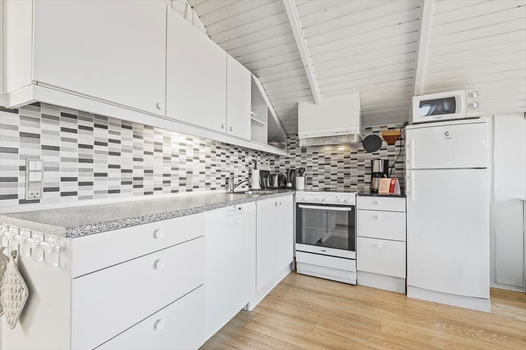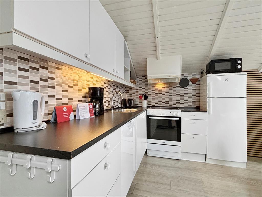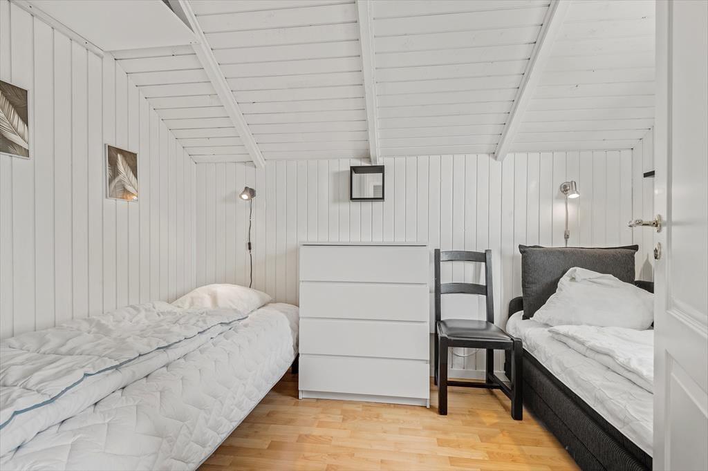 Der er nærmere bestemt tale om et rækkehus i ét plan, som takket være en fornuftig planløsning kan rumme seks personer. Soveværelser er der tre af, og derudover byder huset på et badeværelse og en stue med integreret køkkenafdeling. Alle rum fremstår pæne, lyse og velholdte, for huset blev nemlig renoveret i 2015. Af praktiske detaljer kan det blandt andet nævnes, at der er håndklædetørrer og gulvvarme på badeværelset, mens køkkenet giver dig en god og veludstyret arbejdsplads, når der skal kokkereres. I stuen kan du samles om spisebordet for at spise eller spille brætspil – medmindre du hellere vil slænge dig i hjørnesofaen og se en god film på fladskærmen.