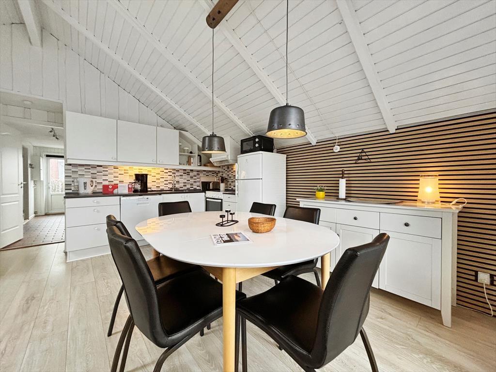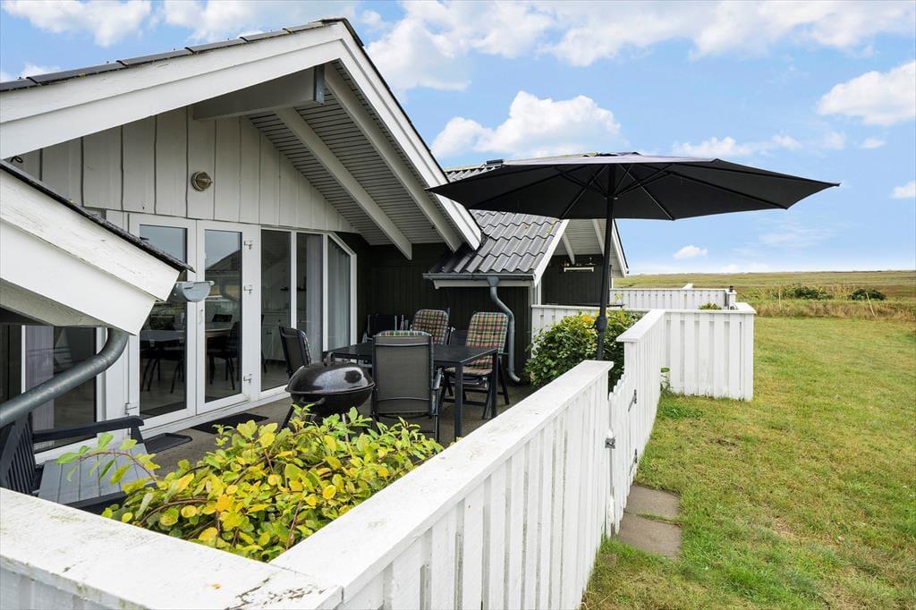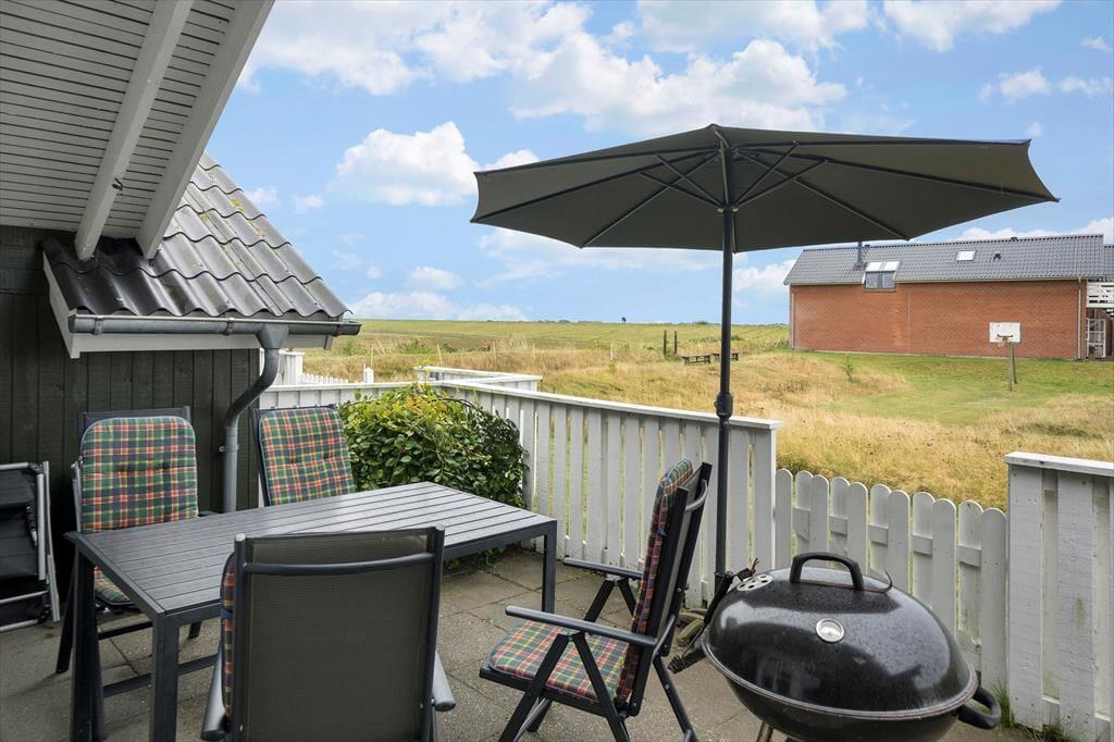 Lokker det gode sommervejr dig udenfor, har du to terrasser at vælge imellem. Den ene er østvendt og derfor et oplagt valg først på dagen. Senere kan du flytte med solen over på den vestvendte terrasse, hvor du ovenikøbet kan nyde udsigten over Vadehavet – og samtidig holde øje med børnene, mens de smutter over for at lege på legepladsen, der ligger tæt på huset.