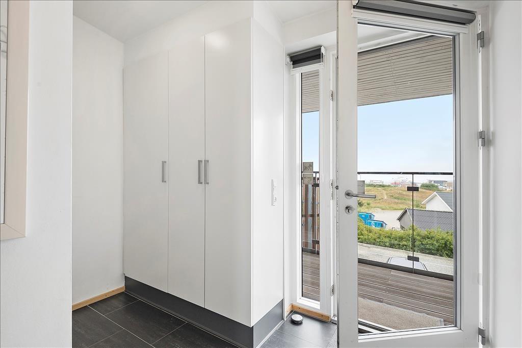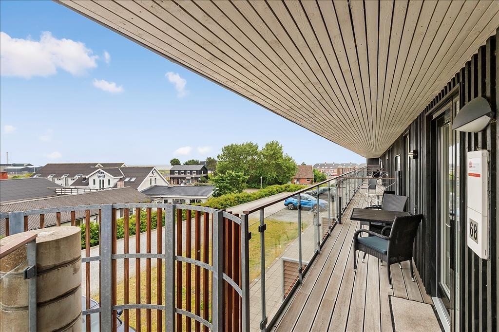 Udearealer har du på begge sider af lejligheden: Ved entréen er der etableret en lille siddeplads, hvor du kan sidde og nyde den fine udsigt over havnen og Vadehavet. På grund af den østvendte placering er det også det oplagte valg, hvis du gerne vil drikke morgenkaffe i solen. Senere på dagen kan du slå dig ned på den store altan, der er orienteret mod sydvest og ligeledes fungerer som en fin udsigtspost.