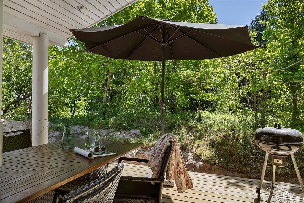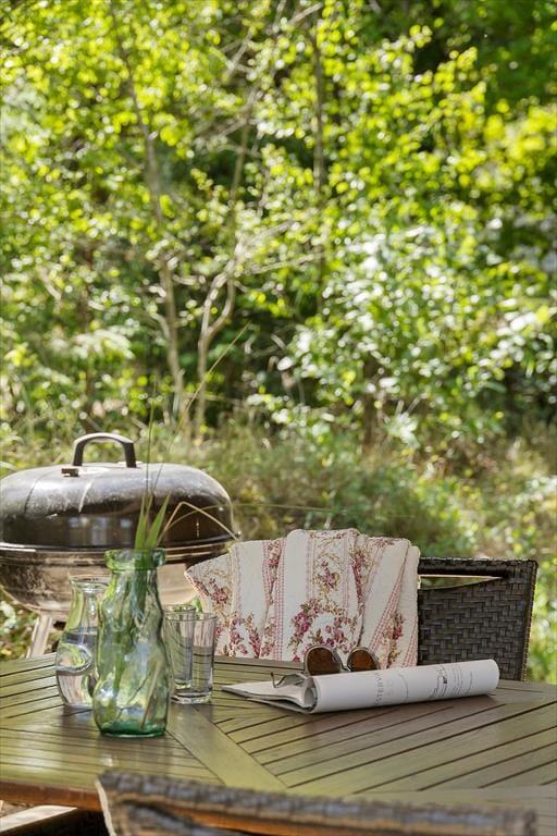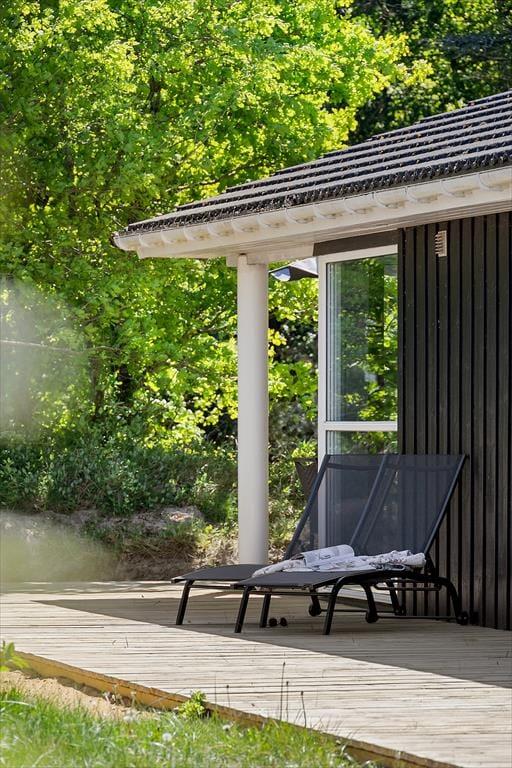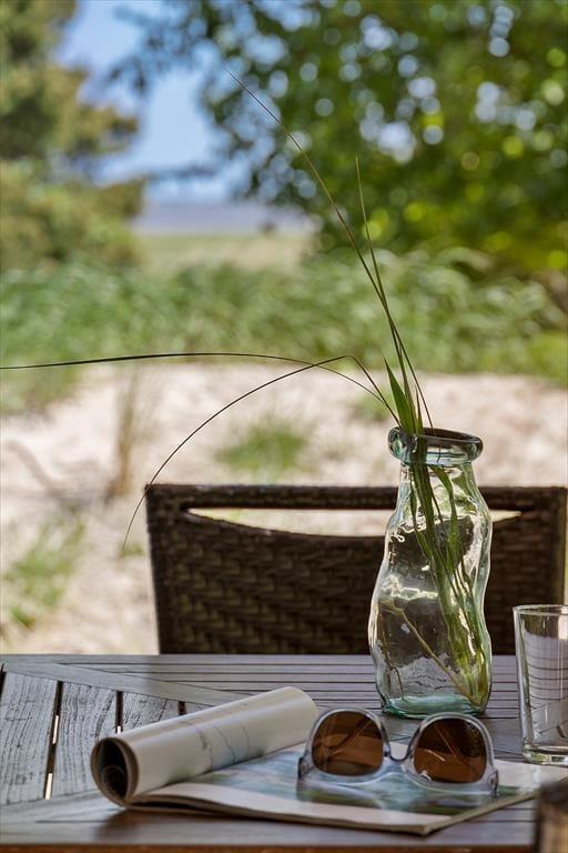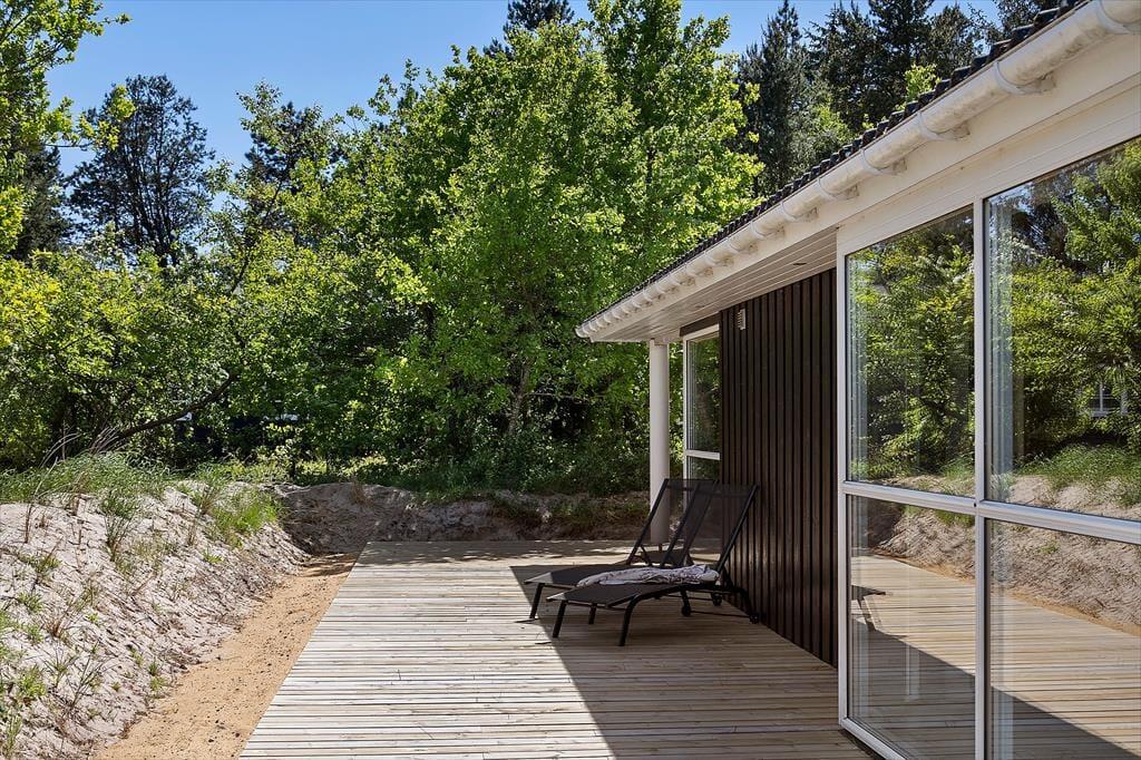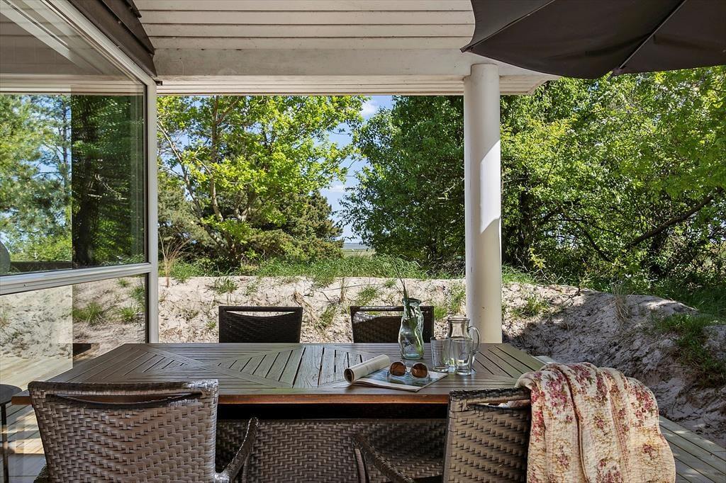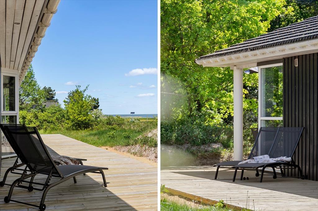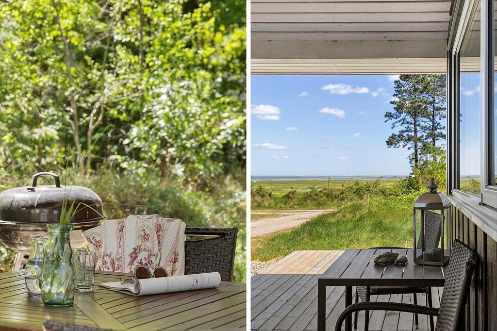De naturskønne omgivelser kan bestemt også nydes ude i det fri på den store, grønne grund. En oplagt opholdsplads er den store, delvist overdækkede træterrasse, der er orienteret ud mod Vadehavet. Eftermiddagen kan tilbringes tilbagelænet i liggestolene, og når det er ved at være spisetid, kan du tænde op i grillen, dække op ved havebordet og glæde dig til et dejligt sommermåltid med den skønneste havudsigt.
