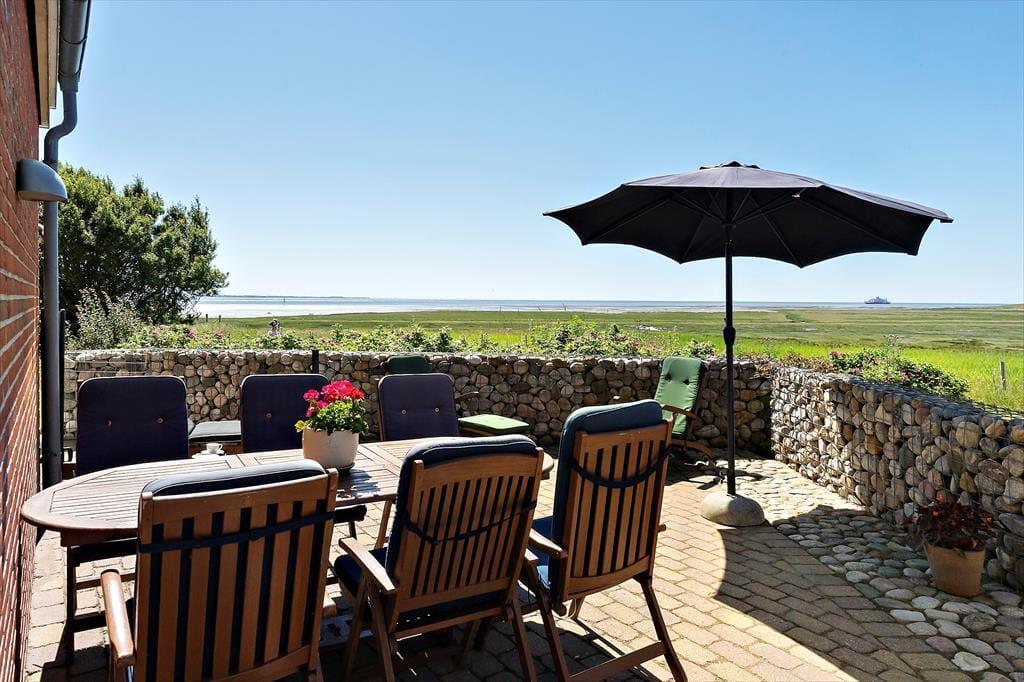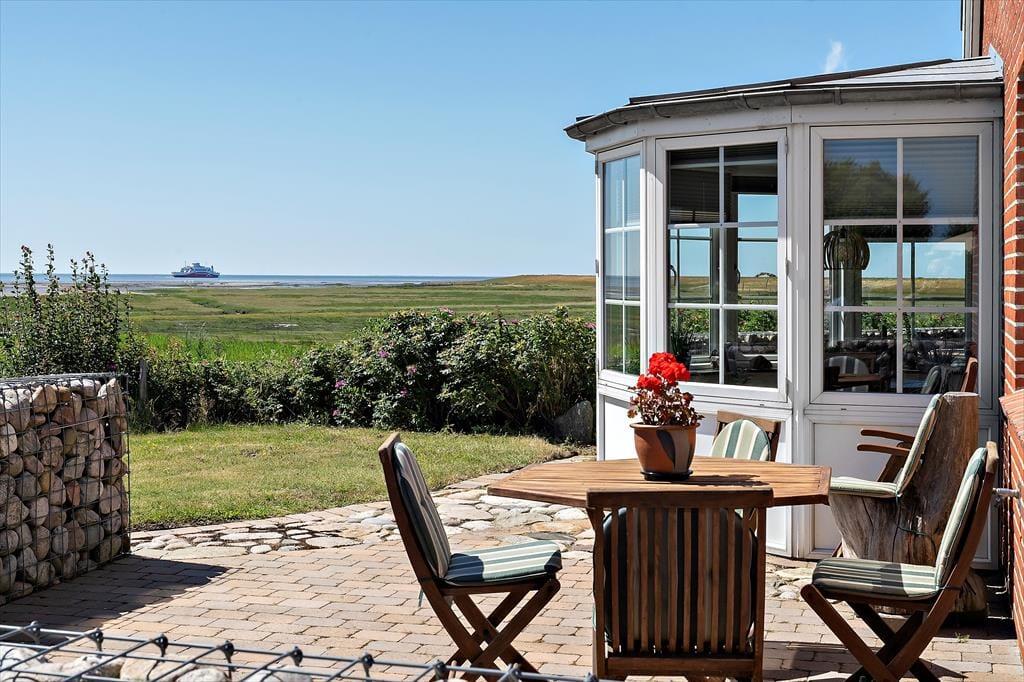 Dette lækre kvalitetssommerhus ligger særdeles naturskønt placeret i første række til Vadehavet. Den flotte havudsigt kan nydes fra terrassen såvel som inde fra huset – ja, selv fra badeværelsets spa kan du skue ud over Rømøs smukke kystlandskab.