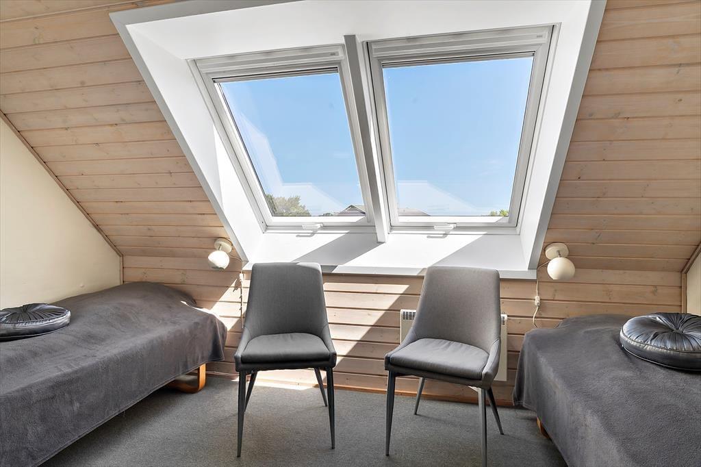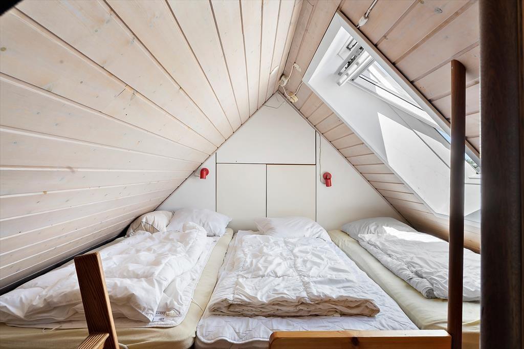 Helt præcist er der tale om et halvt dobbelthus fra 2006. Du kan brede dig på to etager, der byder på to gode badeværelser, tre soveværelser og en skøn stue med integreret køkken og en solrig karnap. Som tillæg til soveværelserne er der to hemse med to sengepladser hver, så i alt kan du være ti gæster i ferieboligen. På begge etager er lysindfaldet glimrende, og synet af Vadehavet er nærmest allestedsnærværende. Et godt sted at falde i staver over udsigten er stuens solrige karnap – og når du skræller kartofler i den veludstyrede køkkenafdeling, fungerer Listerdyb og strandengen også som et smukt bagtæppe. Er det køligt udenfor, er det lækkert, at der er gulvvarme i en stor del af huset. Som et hyggeskabende element er der brændeovn i stuen, og hvis du virkelig trænger til at blive varmet igennem, kan du benytte stueplanets sauna og førstesalens spabad.