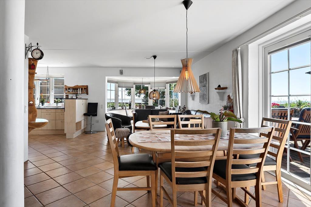 Når solen står højt på himlen, kan du blive varmet igennem på naturlig vis. Ude har du flere terrasser at vælge imellem, så uanset tidspunktet på dagen er det nemt at finde en solbeskinnet plet. Den ene terrasse er helt aflukket og udstyret med en udtrækkelig læskærm, hvis det skulle blive nødvendigt. Og derudover har du havemøbler, liggestole, grill og parasol til rådighed, som sammen med de storslåede naturomgivelser er med til at forsøde sommerlivet.