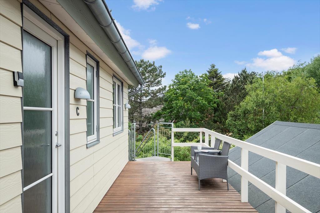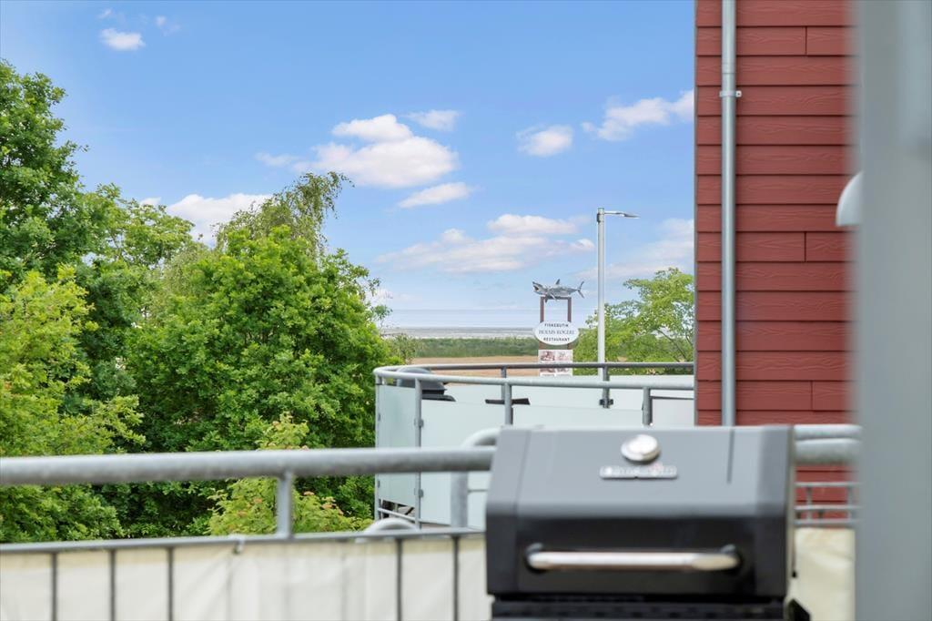 Lejlighedens vestvendte altan er et skønt sted at nyde det gode sommervejr – endda med frit udsyn til grønne træer og kig til Vadehavet. En kop eftermiddagskaffe efter en badetur er en perfekt måde at koble af på, og hvis du kan lide at grille, kan du tilberede de lækreste måltider herude under åben himmel. På svalegangen, som du deler med nabolejligheden, har du for øvrigt også mulighed for at slå dig ned.