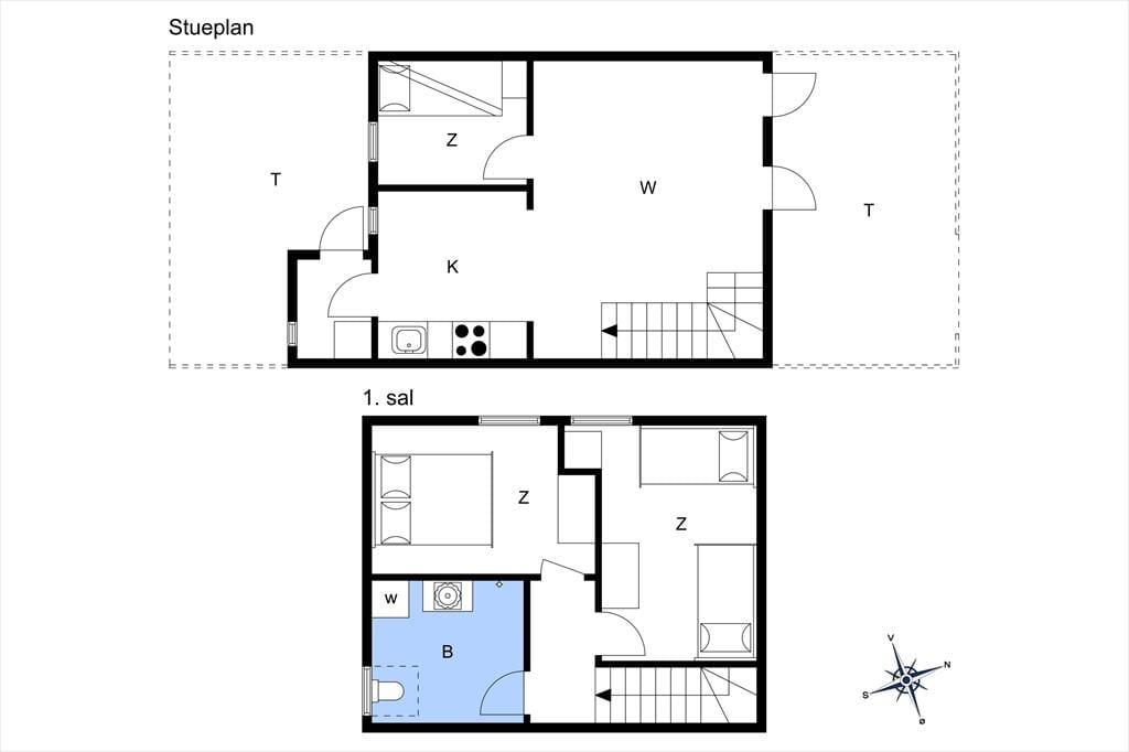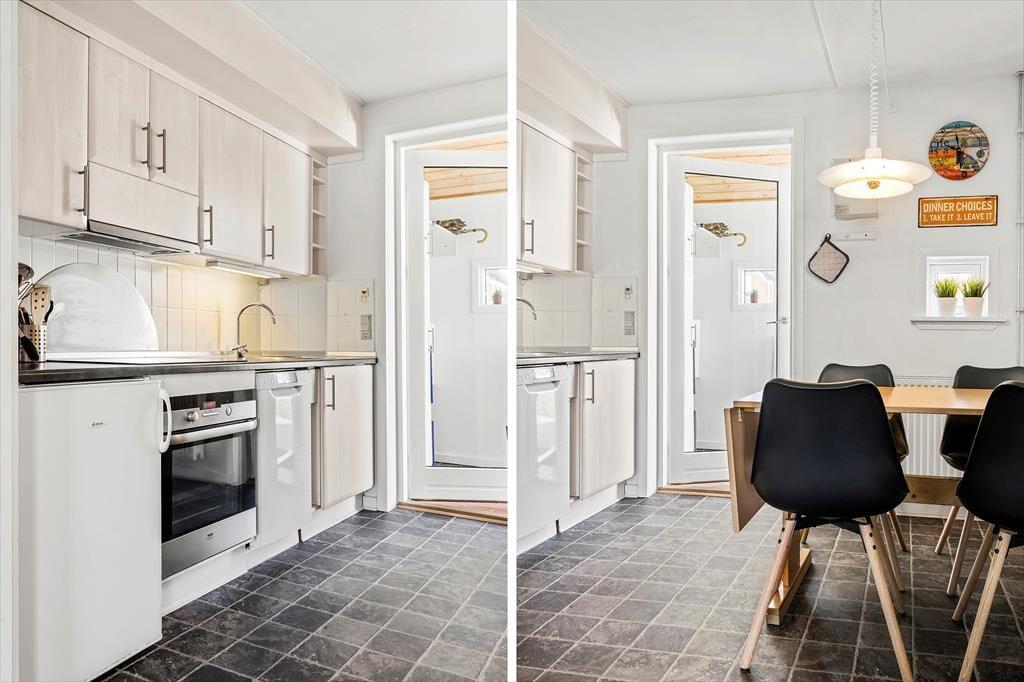 Kvadratmeterne er godt udnyttede inden døre, og du og dine kære kan brede jer over to plan. To af soveværelserne ligger på førstesalen sammen med husets brusebadeværelse, og i stueetagen er der også et soveværelse, hvor du kan se frem til at sove godt og længe. Ikke bare morgenmaden, men alle dagens måltider kan trylles frem i det åbne køkken, og I kan også spise her ved bordet, mens stuens sofaafdeling indbyder til hygge og fuldkommen afslapning. Så find endelig jeres sjoveste brætspil og krydsogtværs frem, hvis I trænger til at tage en del af ferien i helt roligt tempo.