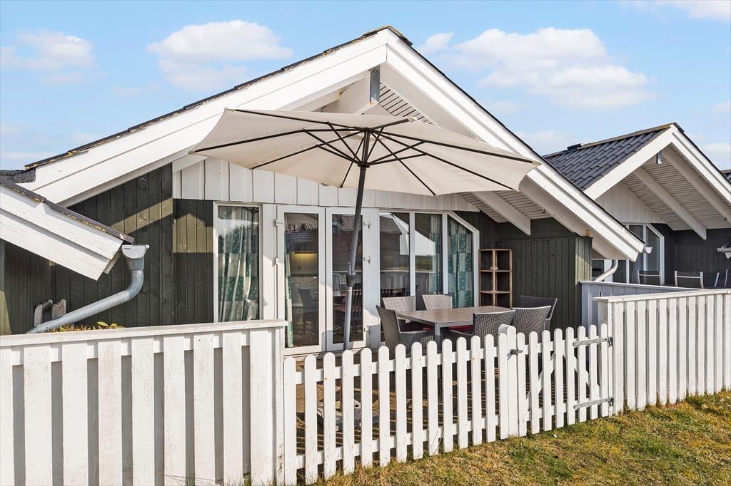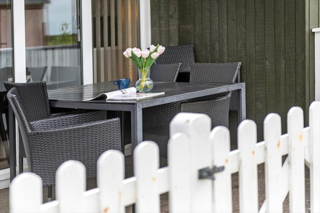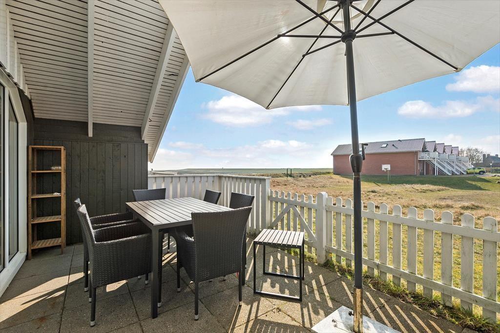 På solbeskinnede sommerdage har du to terrasser at vælge imellem. Den mindste er østvendt, og denne orientering gør den oplagt som morgenterrasse, hvis du gerne vil sidde i solen. Husets største terrasse ligger mod vest og er ovenikøbet delvist overdækket og omkranset af plankeværk. Her kan du sidde og nyde sommerlivet i fuldkommen ro og mag – endda med udsigt ud over det flade kystlandskab og Vadehavet. Det grønne areal, der støder op til terrassen, er anlagt med petanquebane, bordtennisbord og legeplads. Her kan børnene selv smutte hen for at lege og møde nye kammerater, mens du bliver siddende og fortsætter hyggesnakken.